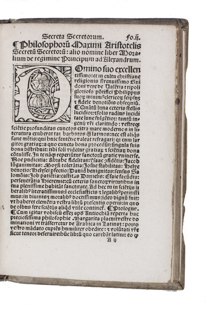 Four of the works in the present collection are pseudo-Aristotelian works that had been well known since the 13th century or earlier. The Secreta secretorum is here present in the translation of Philip of Tripoli; the De signis aquarum, ventorum et tempestatum on weather signs, was translated in the 13th century by Bartholomew of Messina; the third pseudo-Aristotle is De mineralibus on gems; the fourth, Alexandri Macedonis ad Aristotelem de mirabilibus Indie, is a fictitious letter by Alexander the Great to his teacher Aristotle, describing the wonders of India and the East. All four of them were accepted during the later Middle Ages as reliable literary portraits of the Indians, especially of the Brahmans.
