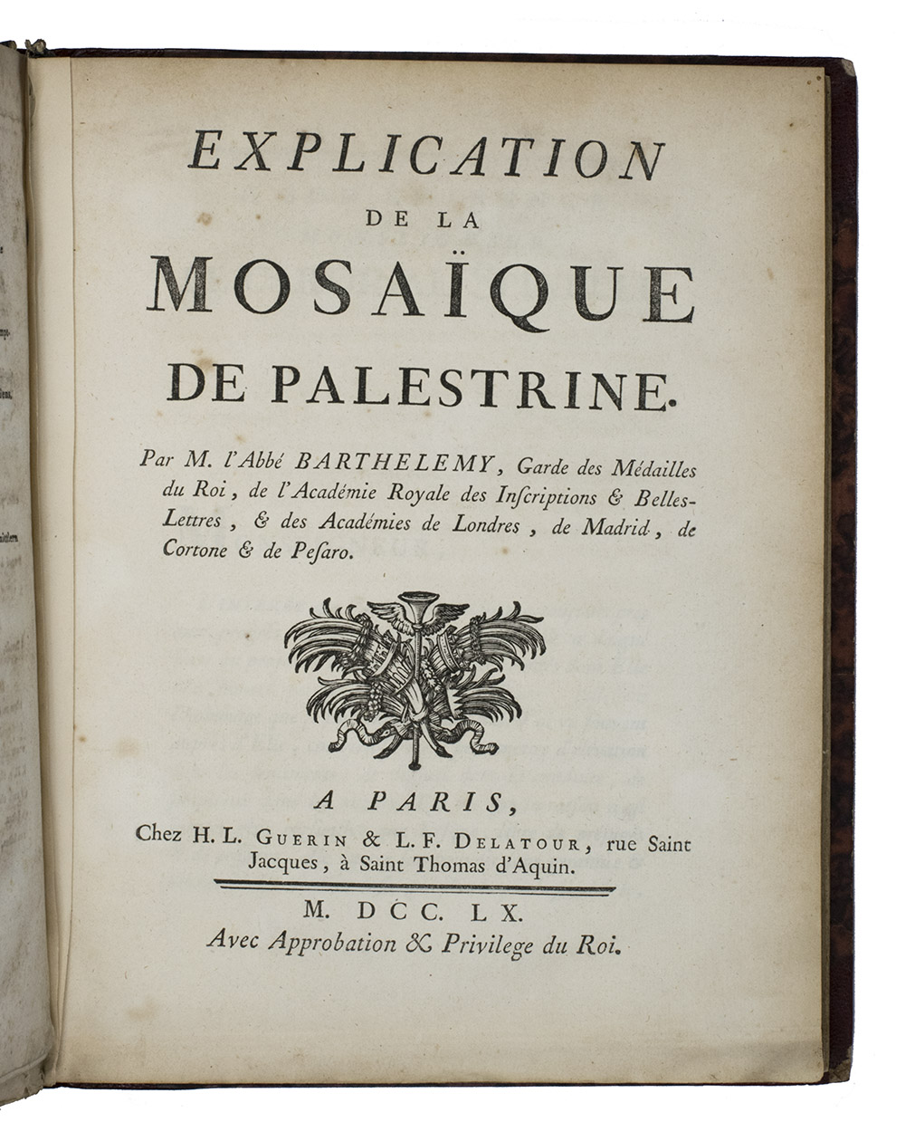 (5) BARTHÉLEMY, Jean-Jacques. Explication de la mosaïque de Palestrine. Paris, H.L. Guerin & L.F. Delatour, 1760.
