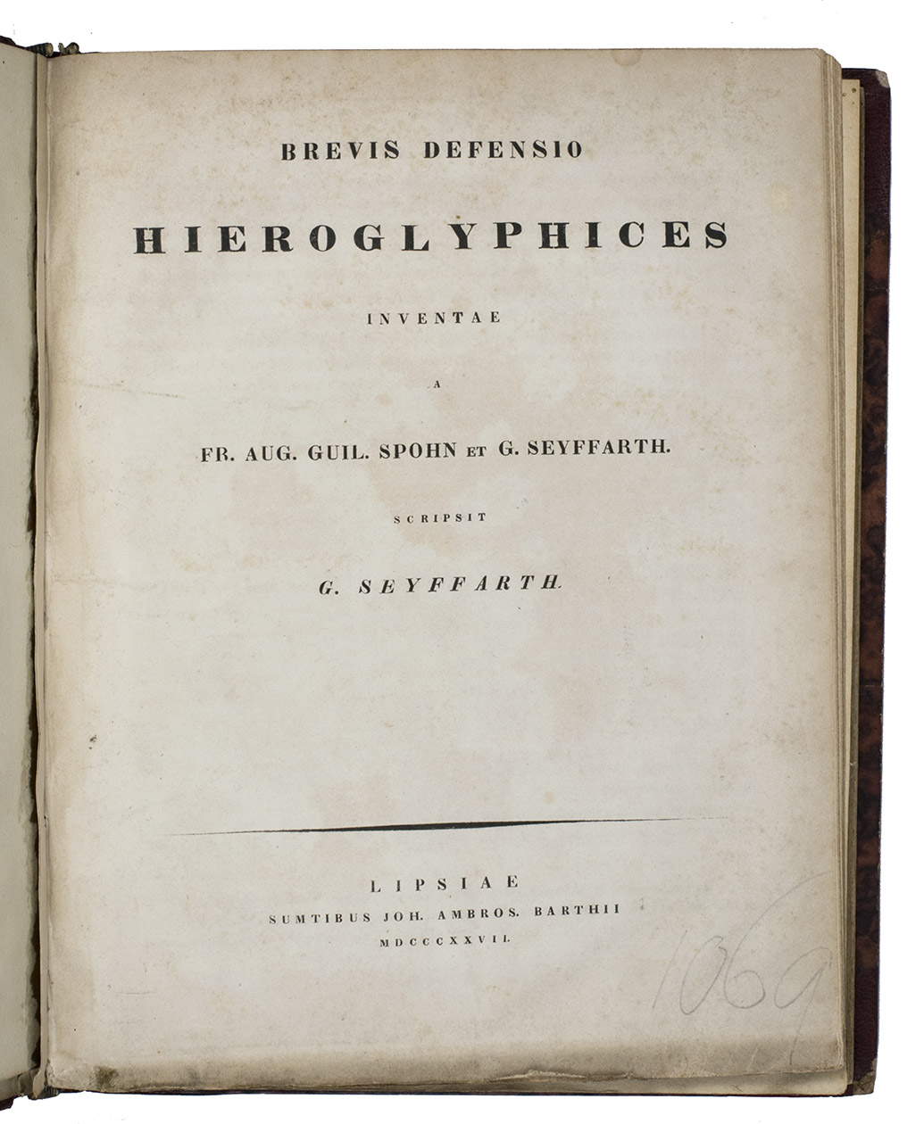 (3) SEYFFARTH, Gustav [and Friedrich August Wilhelm SPOHN]. Brevis defensio hieroglyphices.