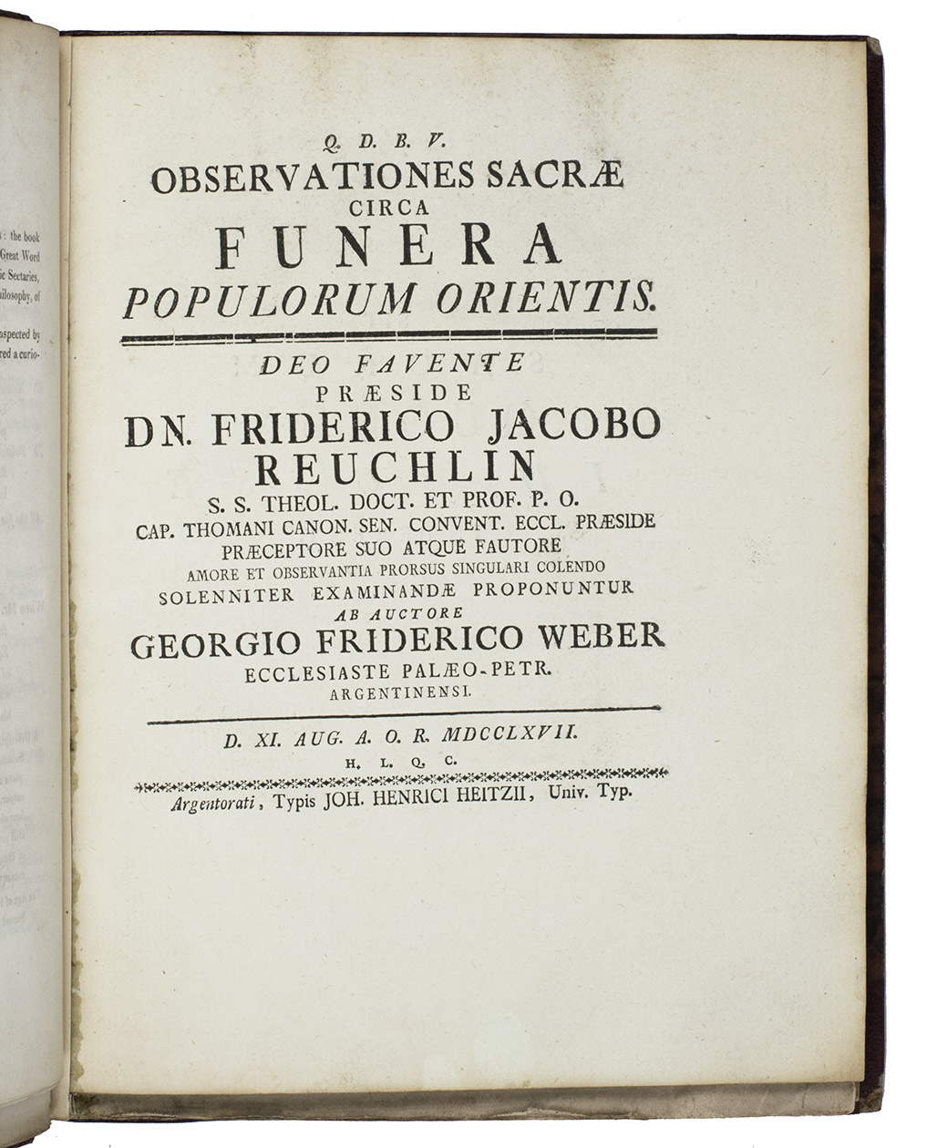 (2) WEBER, Georg Friedrich. Observationes sacrae circa funera populorum orientis. ...