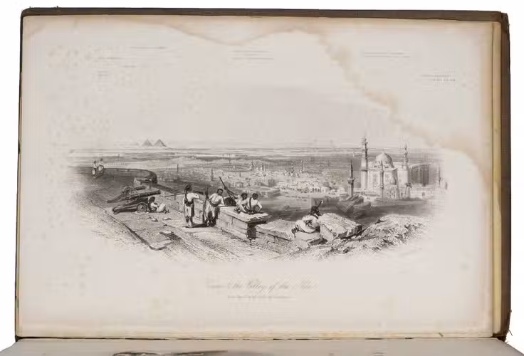 Binding a bid faded, head and foot of spine worn, hinges weak, frontispiece and engraved title half loose and stained, map and plates slightly foxed, the text is printed in ruled frames, with a handwritten, with decorated initials in red, dedication on the verso of the first flyleaf: "To our dear Mother, Jan. 22 1850". In this work, Bartlett gives a captivating account of his travels in Egypt. Blackmer 1138; Hilmy I, p. 55. cf. DNB 3, p. 335; Hage Chahine 333-334 (other eds.).