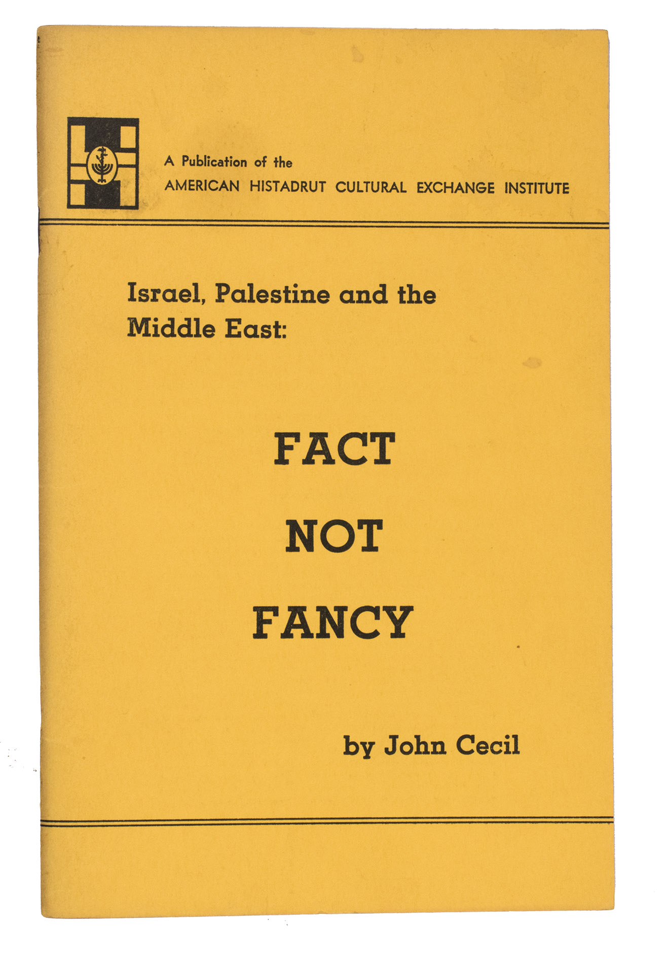 (4) CECIL, John. Israel, Palestine and the Middle East: fact not fancy. New York, 1960s.