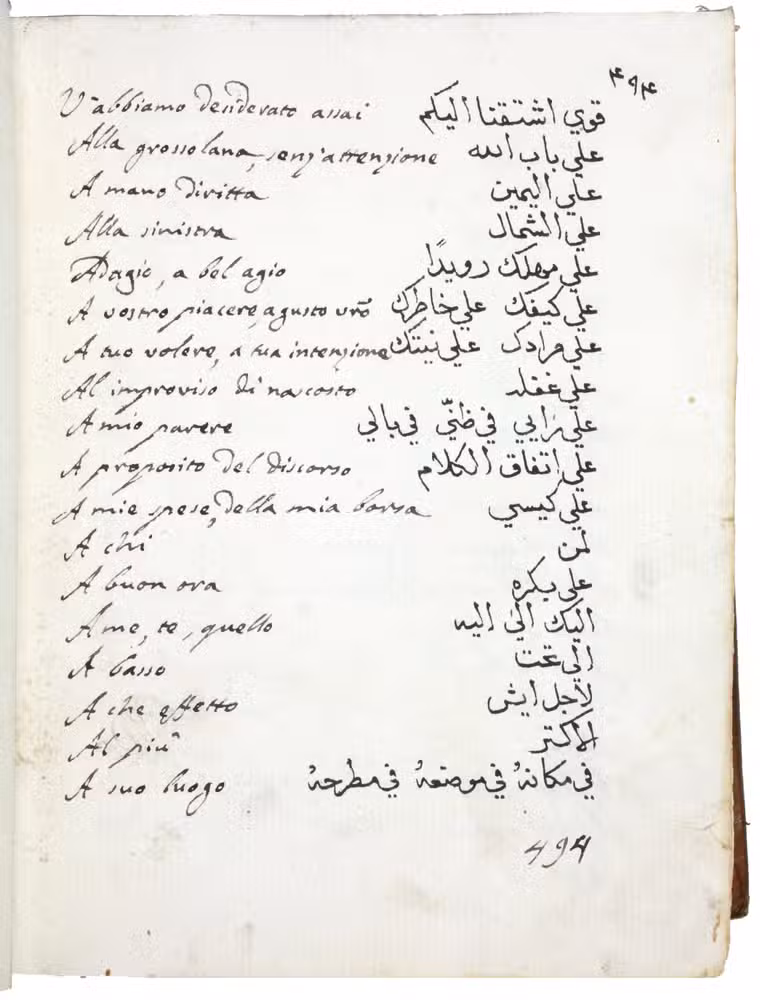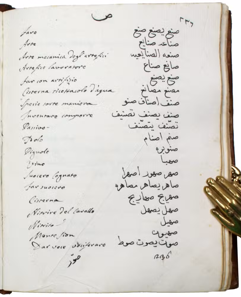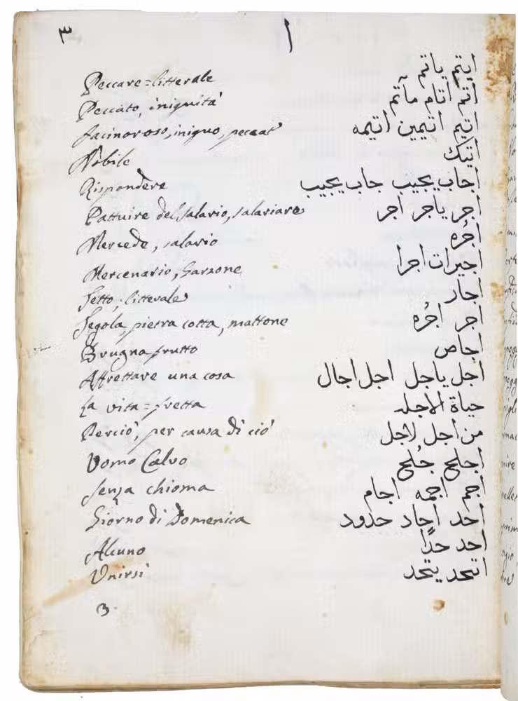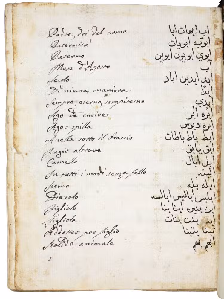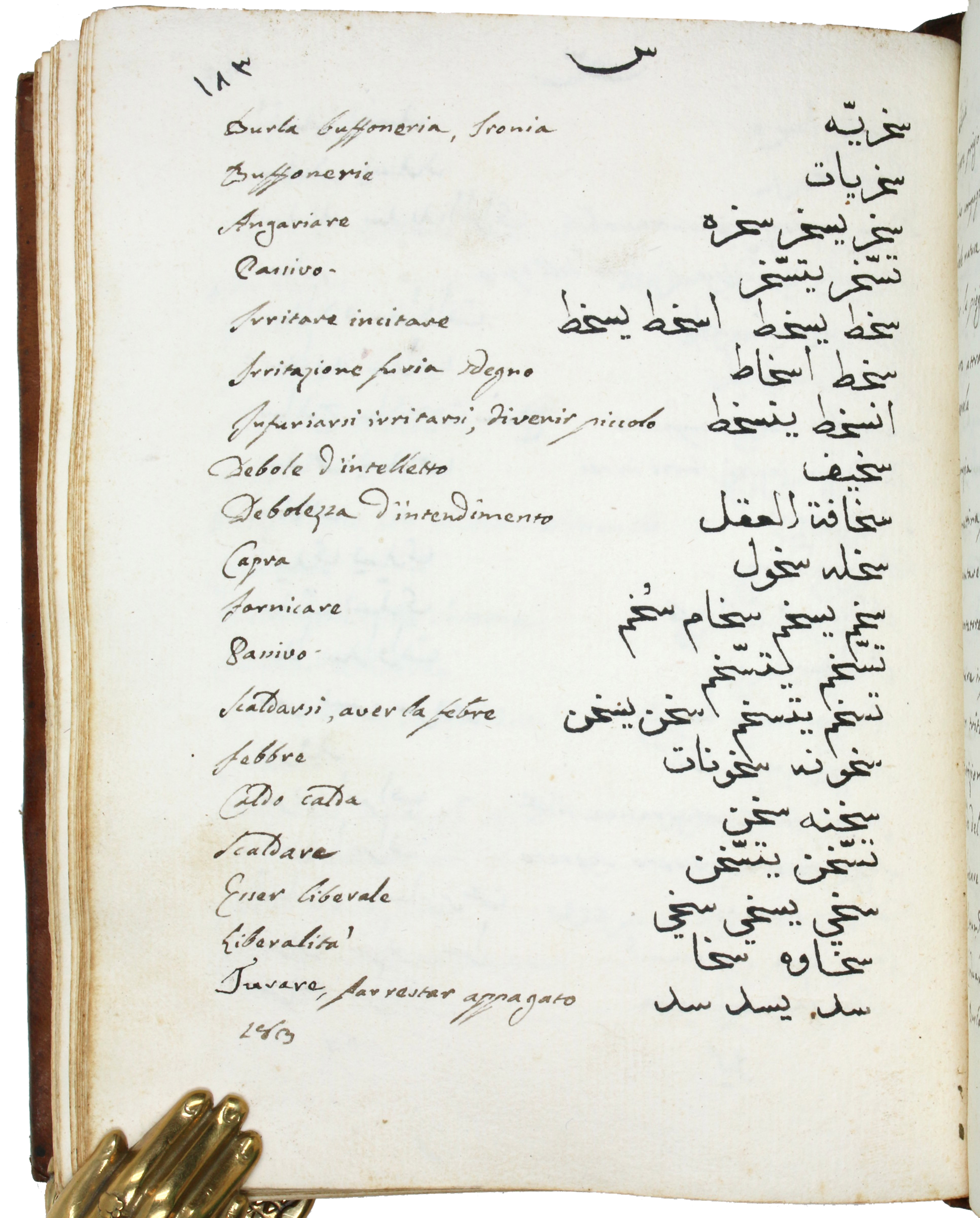 [Vocabularium Italico-Arabicum]. Arabic-Italian dictionary.