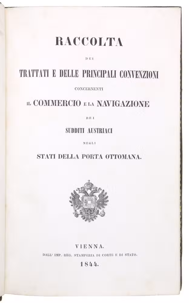 With: Raccolta dei trattati e delle principali convenzioni concernanti il commercio e la navigazione dei sudditi Austriaci negli Stati della Porta Ottomana.