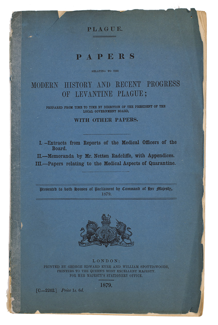 Papers relating to the modern history and recent progress of Levantine plague; prepared from time to time by direction of the president to the local government board, with other papers. Presented to both Houses of Parliament by command of Her Majesty, 1879. C.-2262.