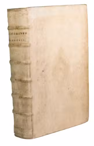 Padova, Typographia Seminaria, 1698. 2 volumes bound as 1. Folio (35.5 x 25 cm). Blind-tooled vellum (ca. 1800?), reusing and retooling vellum from a slightly earlier blind-tooled binding. [5], [1 blank], 45, [2], [1 blank], 46, [2], 81, [3], 94, [10], 126, [3] [1 blank] [13], [1 blank]; [8], 17, [3], “838” [= 836], [11], [1 blank] pp.