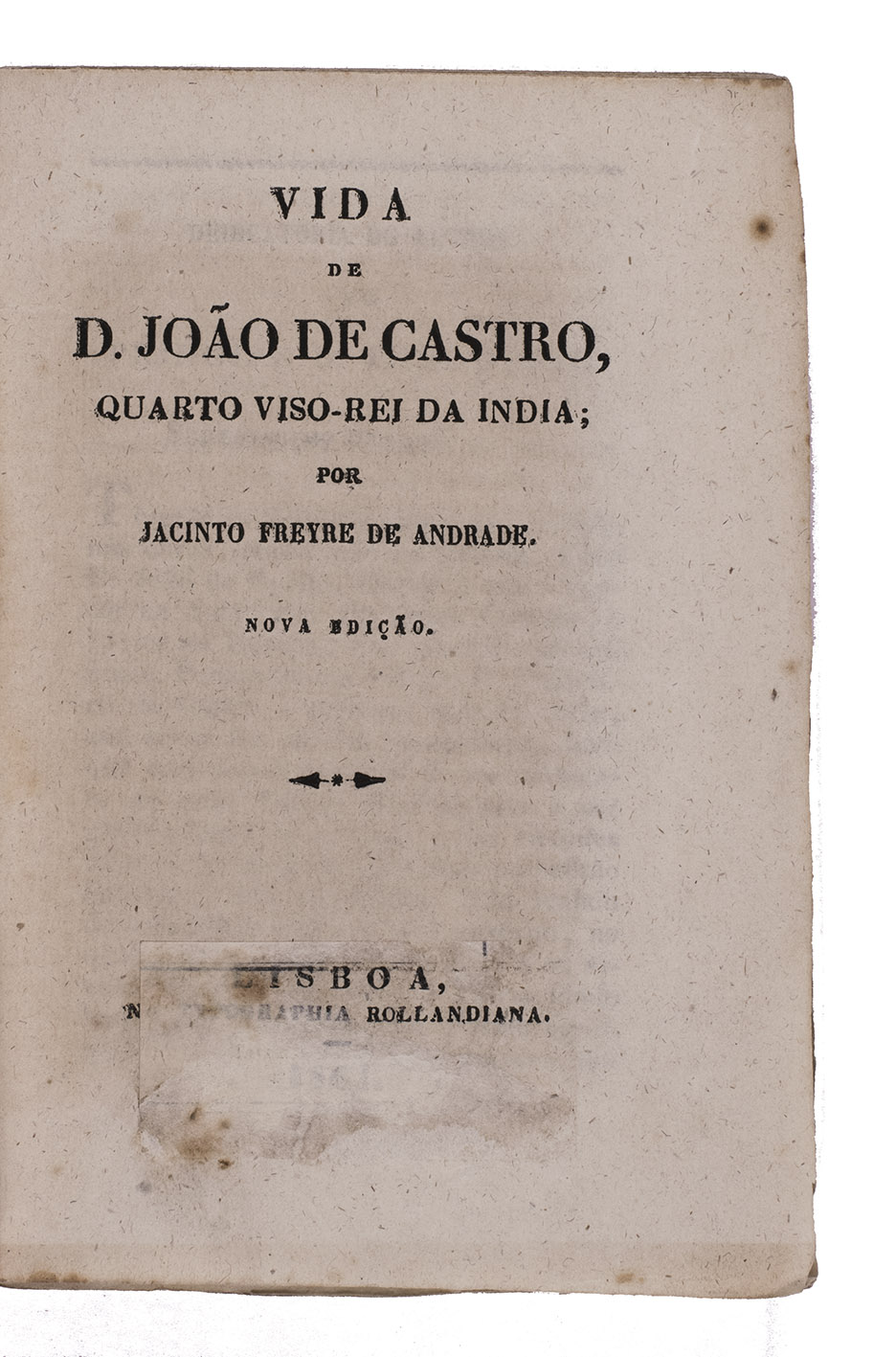 Important biography of the Portuguese nobleman and fourth viceroy of Portuguese India D. João de Castro (1500-1548), written by the Portuguese Catholic priest and historian Jacinto Freire de Andrade (1597-1657). The work was first published in Lisbon in 1651 and was the first biography in the Portuguese language. "Cette biographie est un des livres classiques de la langue portugaise" (Brunet)