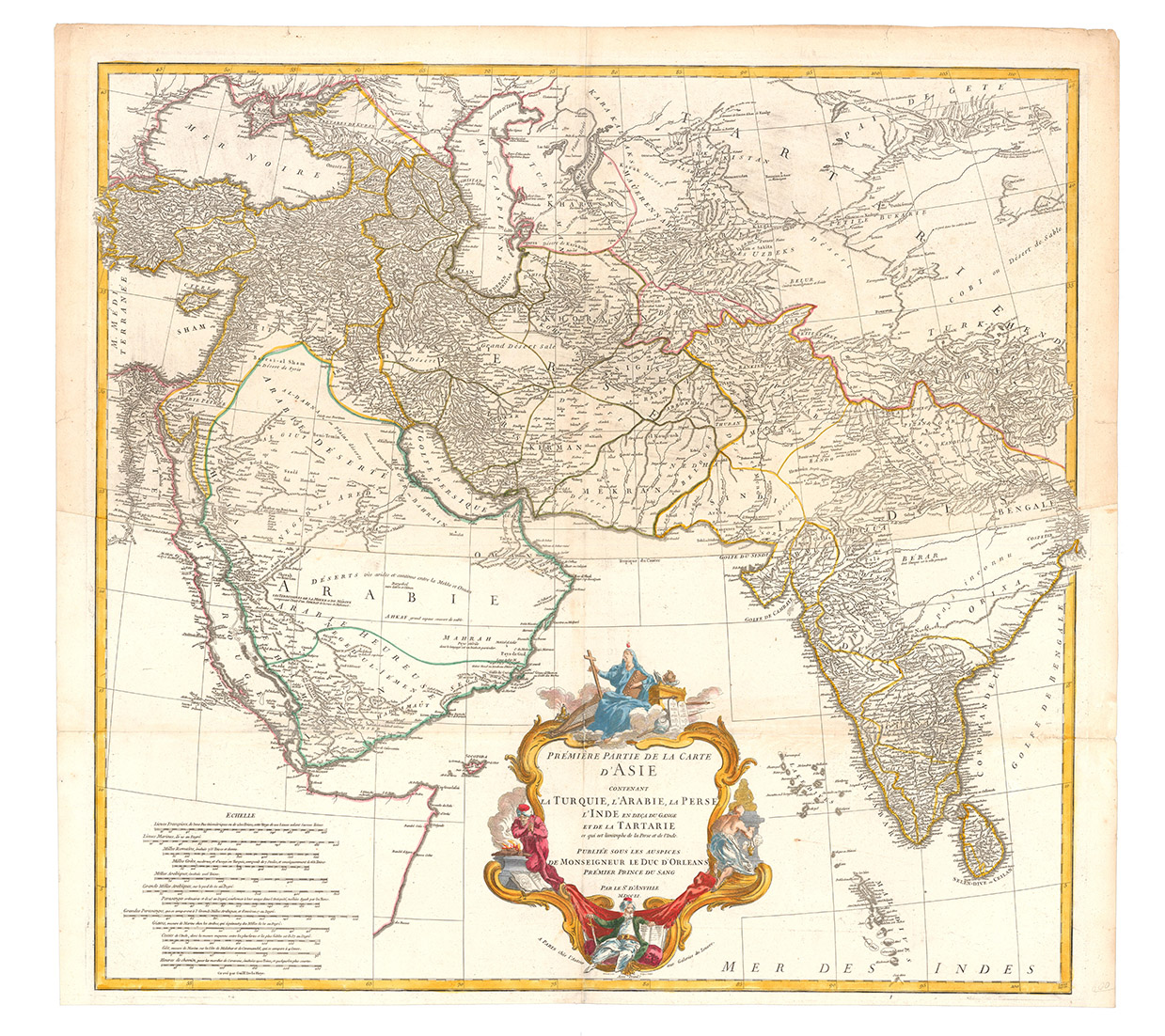 Premier Partie de la Carte d' Asie, contenant La Turquie, L'Arabie, La Perse, L'Inde en deça du Gange et de la Tartarie ce qui est limitrophe de la Pers et du Gange.