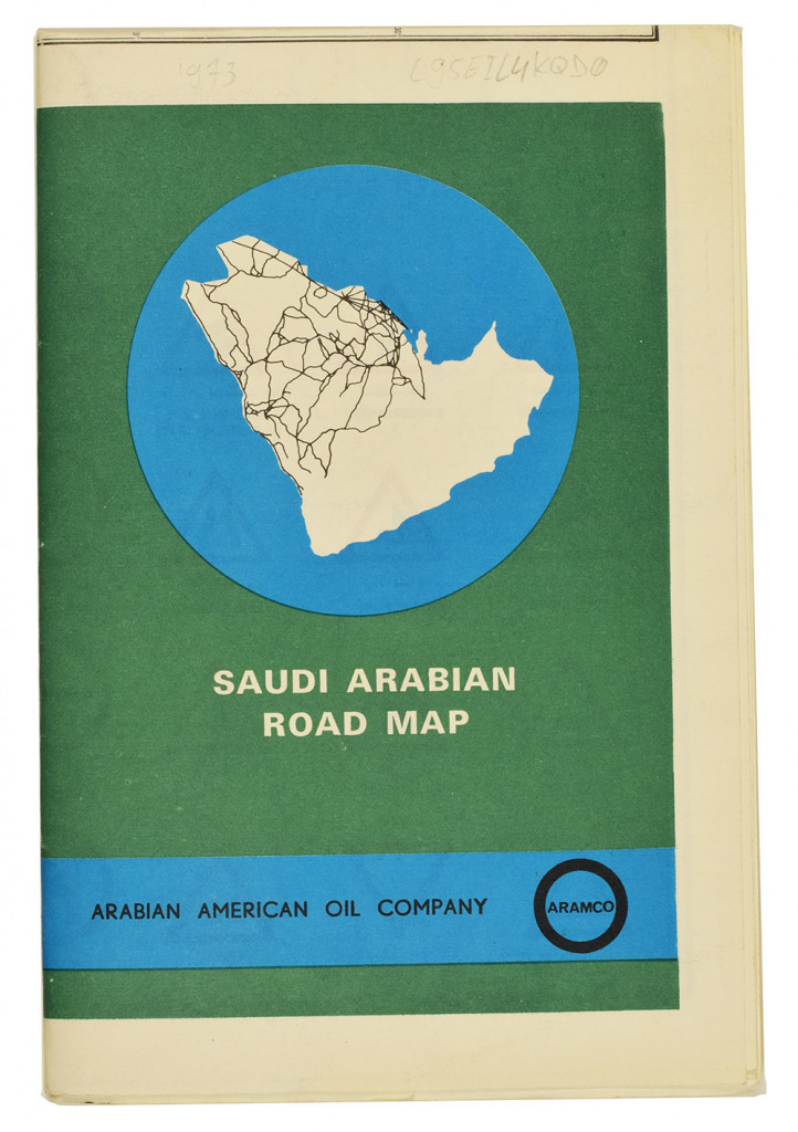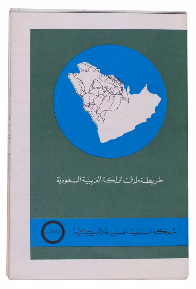 Dammam, printed by the Al-Mutawa Press for the Arabian American Oil Company, 1973. Large folding map (60 x 90.5 cm), printed in colour, depicting the Kingdom of Saudi Arabia and its main roads. With on the right the title in both Arabic and English and a table with the distances from one city to another. Printed on two sides, one side with the map in English and the other in Arabic.