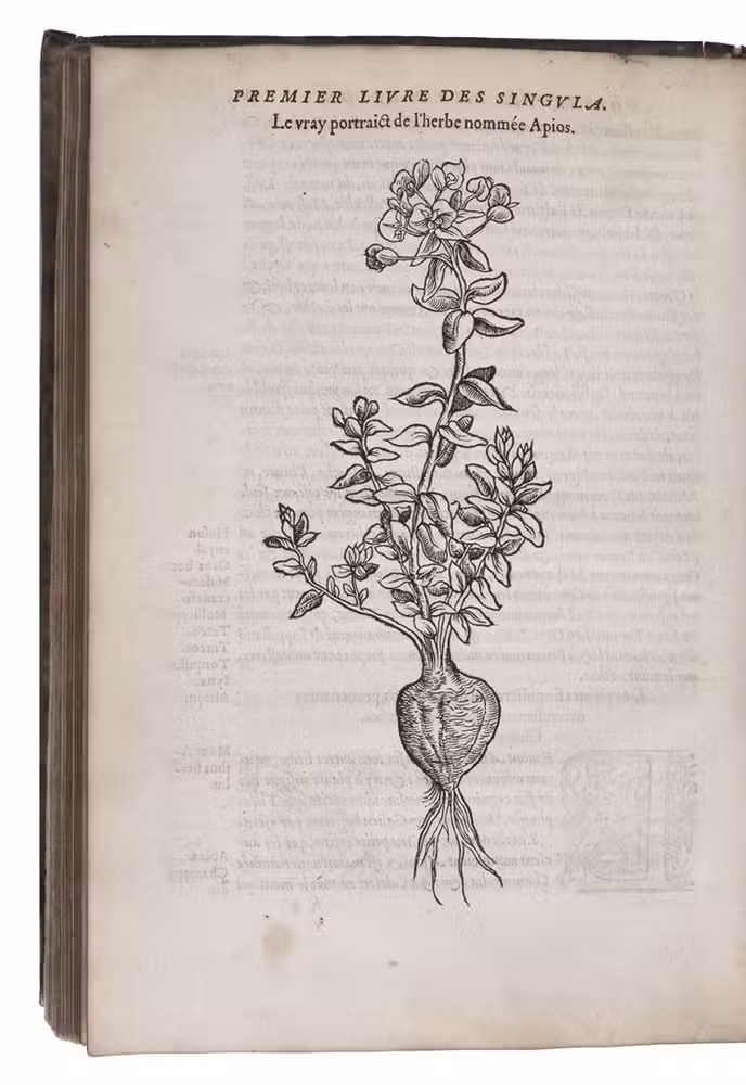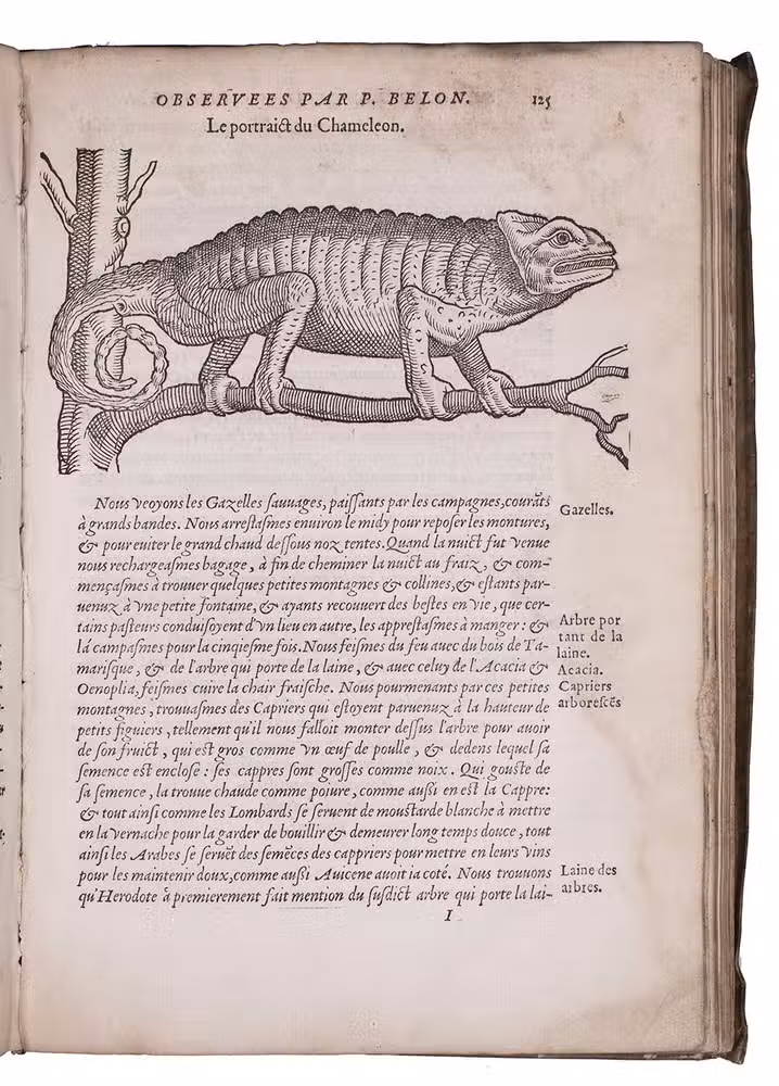 Third edition of Belon's Observations, the fruit of his extensive travels in Greece, Turkey, Egypt, Palestine, Lebanon and Syria from 1546 to 1549. Piere Belon (ca. 1518-1564), famous for his works on ornithology, was attached as naturalist to the French embassy to the Ottoman Empire, aimed at convincing Suleiman the Magnificent to join forces against Charles V. Unlike many contemporary travel writers, Belon does not elaborate on extraordinary travel adventures, but rather limits himself to detailed observations on mammals, fish, snakes, birds, plants and the manners and customs of the peoples he encountered, only commenting on what he had witnessed himself.