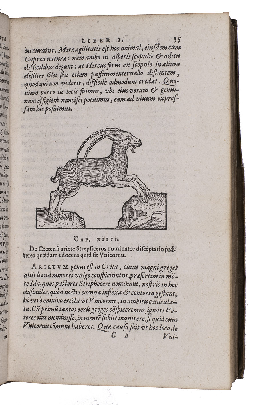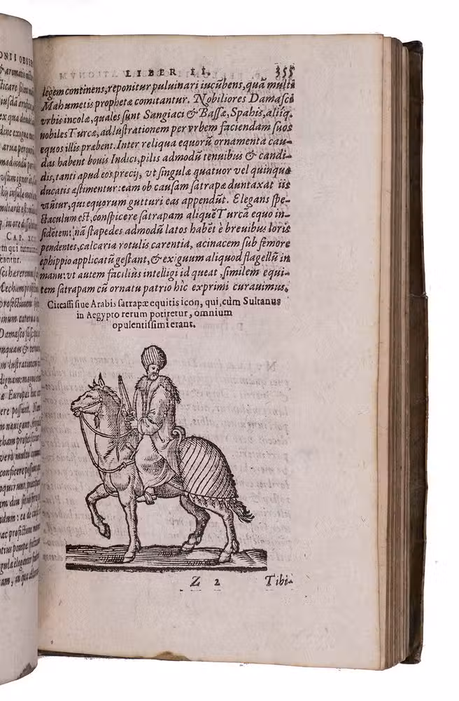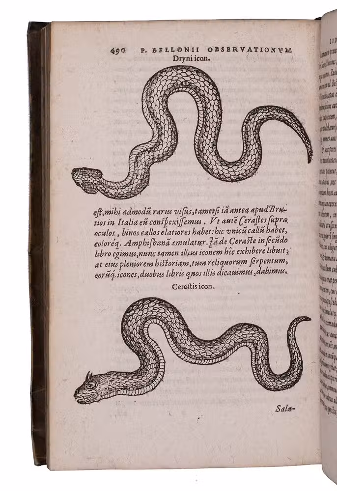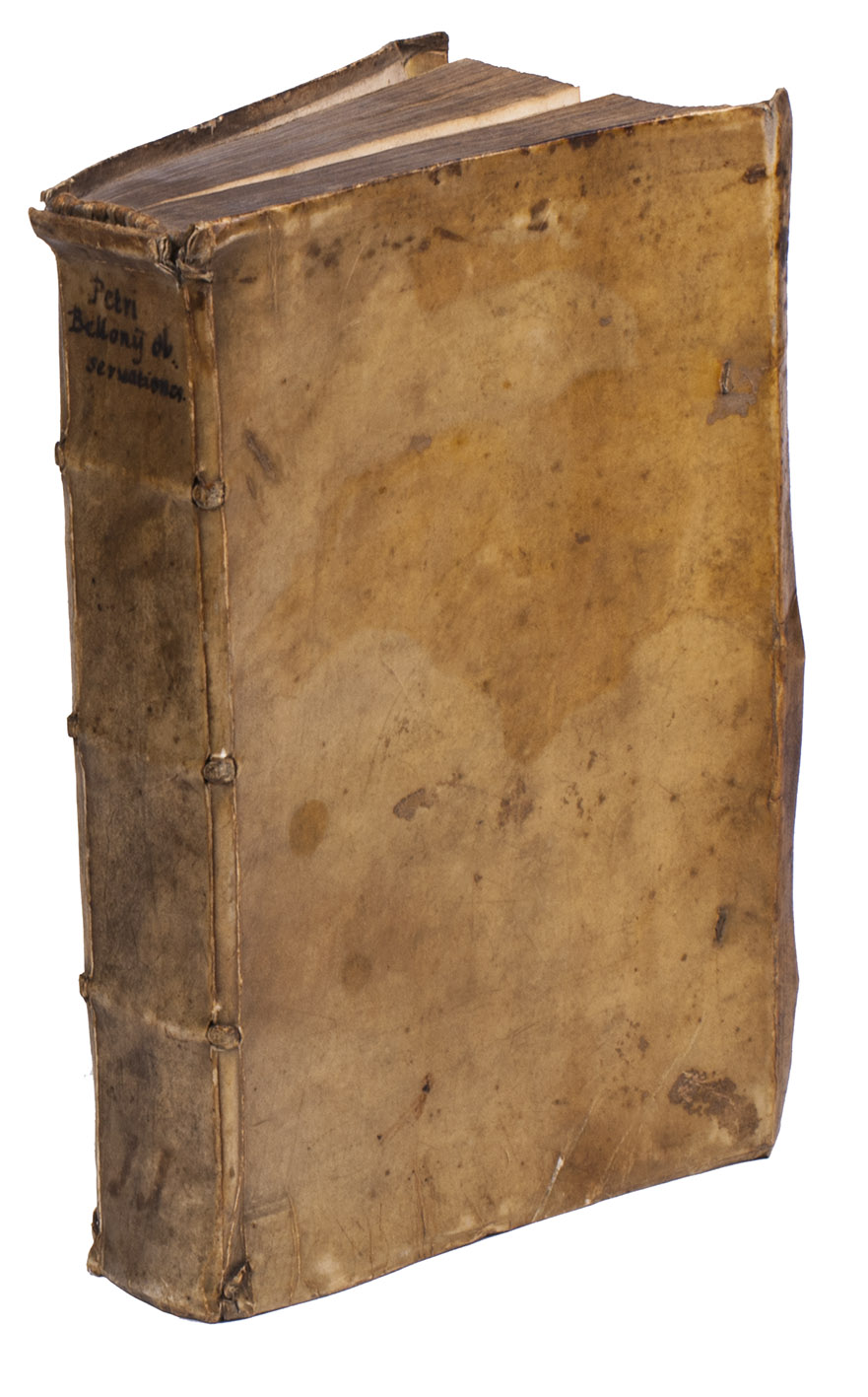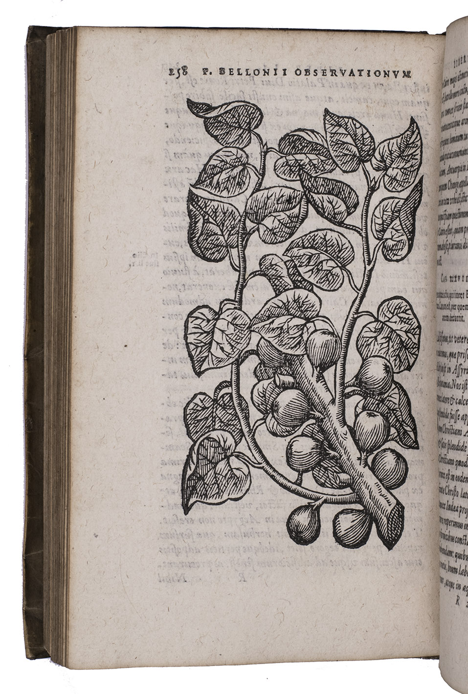 Belon's account of his voyage through the Levant, here in the first Latin edition, by Christoffel Plantin translated (from Plantins 1555 edition in the original French) and with a few additional notes by the great botanist Carolus Clusius, formerly director of the botanical garden of the Holy Roman Emperor Maximilian II at Vienna and later that of Leiden University. From 1546 to 1549 the famous French naturalist Pierre Belon (or Bellon, Belon du Mans; 1517-1564) made a journey through Greece, the Greek Islands, Alexandria, Lower Egypt, Judea, Lebanon, Syria, Turkey and back to Rome. His original intention was to study the indigenous plants, because he had read much about their medicinal value. He also made notes on the religion and customs of the local population and on ancient buildings and other antiquities. He published his findings under the title Les Observations de Plusieurs singularitez & choses memorables, trouvées en Grèce, Asie, Iudée, Egypte, Arabie, & autres pays estranges ... (Paris, 1553). The work received wide attention and Plantin published the first edition outside Paris (Antwerp, 1555): one of the first books he published. Pieter van der Borcht and the woodblock cutter Gerard Janssen van Kampen made the present woodcuts for the present edition after those of Plantin's French edition of 1555 (whose woodcuts had been sold at an auction in 1562). They depict plants and trees, animals, a map of Turkey and a view of Alexandria. Plantins grandson, successor to his Leiden office, published a second Latin edition in 1605. Clusius also translated the second work into Latin, from the first French edition of Belons Les remonstrances sur le default du labour et culture des plantes, et de la connoissance d'icelles, contenant la maniere d'affranchir et apprivoiser les arbres sauvages (Paris 1558). It discusses exotic trees that might be introduced into France.