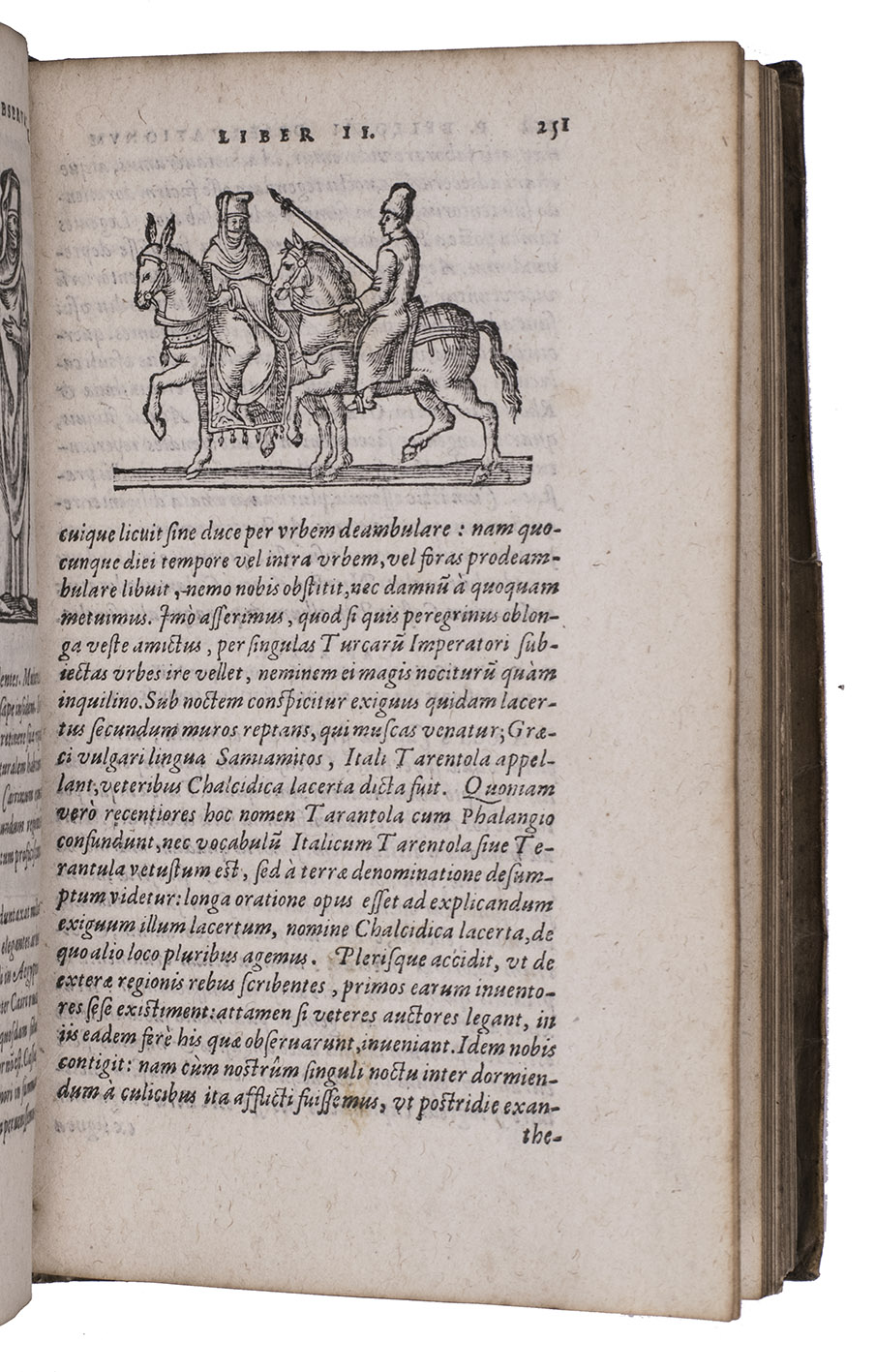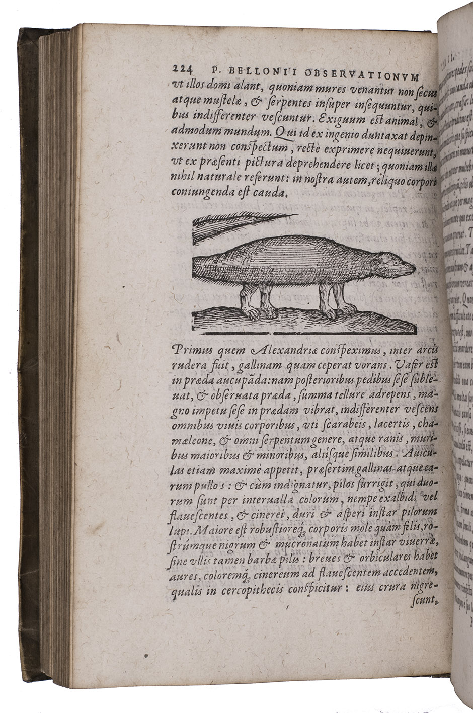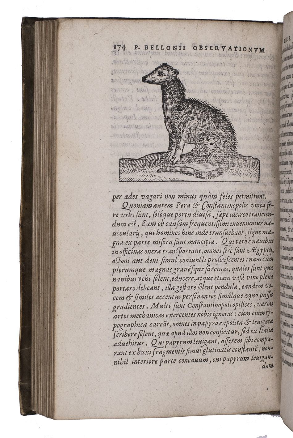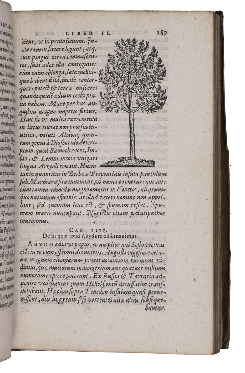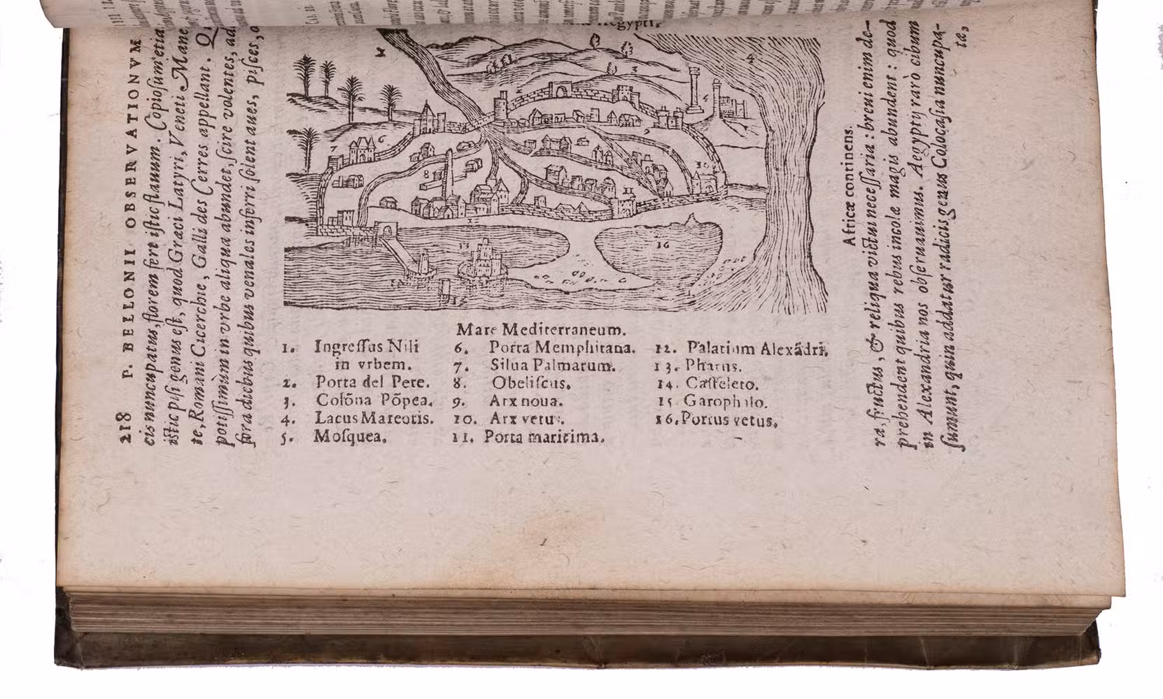 Belon's account of his voyage through the Levant, here in the first Latin edition, by Christoffel Plantin translated (from Plantins 1555 edition in the original French) and with a few additional notes by the great botanist Carolus Clusius, formerly director of the botanical garden of the Holy Roman Emperor Maximilian II at Vienna and later that of Leiden University. From 1546 to 1549 the famous French naturalist Pierre Belon (or Bellon, Belon du Mans; 1517-1564) made a journey through Greece, the Greek Islands, Alexandria, Lower Egypt, Judea, Lebanon, Syria, Turkey and back to Rome. His original intention was to study the indigenous plants, because he had read much about their medicinal value. He also made notes on the religion and customs of the local population and on ancient buildings and other antiquities. He published his findings under the title Les Observations de Plusieurs singularitez & choses memorables, trouvées en Grèce, Asie, Iudée, Egypte, Arabie, & autres pays estranges ... (Paris, 1553). The work received wide attention and Plantin published the first edition outside Paris (Antwerp, 1555): one of the first books he published. Pieter van der Borcht and the woodblock cutter Gerard Janssen van Kampen made the present woodcuts for the present edition after those of Plantin's French edition of 1555 (whose woodcuts had been sold at an auction in 1562). They depict plants and trees, animals, a map of Turkey and a view of Alexandria. Plantins grandson, successor to his Leiden office, published a second Latin edition in 1605. Clusius also translated the second work into Latin, from the first French edition of Belons Les remonstrances sur le default du labour et culture des plantes, et de la connoissance d'icelles, contenant la maniere d'affranchir et apprivoiser les arbres sauvages (Paris 1558). It discusses exotic trees that might be introduced into France.