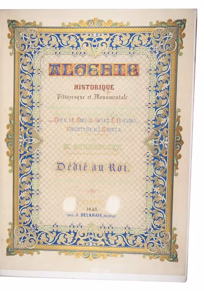 Algerie historique, pittoresque et monumentale, ou Recueil de vues, costumes et portraits faits d'après nature dans les provinces d'Alger, Bone, Constantine et Oran.