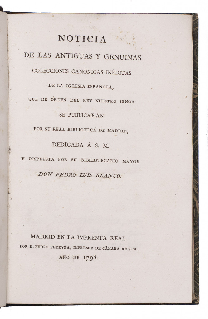 Noticia de las antiguas y genuinas colecciones canónicas inéditas de la Iglesia Espanola, que de órden del rey nuestro señor se publicarán por su Real Bibliotheca de Madrid, ...