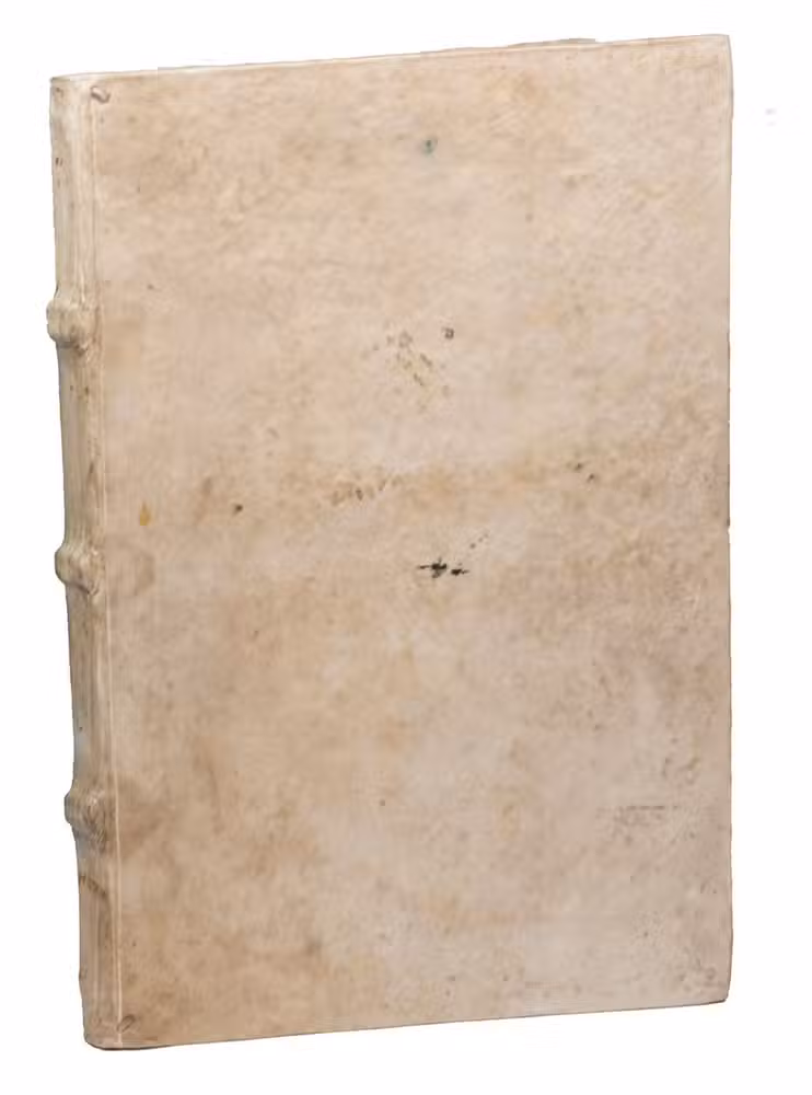 [Colophon: Augsburg, Sigismund Grimm & Marcus Wirsung, July 1520]. Folio. With the letterpress half-title in an elaborate woodcut border with a trophy of arms, putti and mermen. 17th century vellum with 3 raised spine-bands. [6], LXXXI, [1] ll.