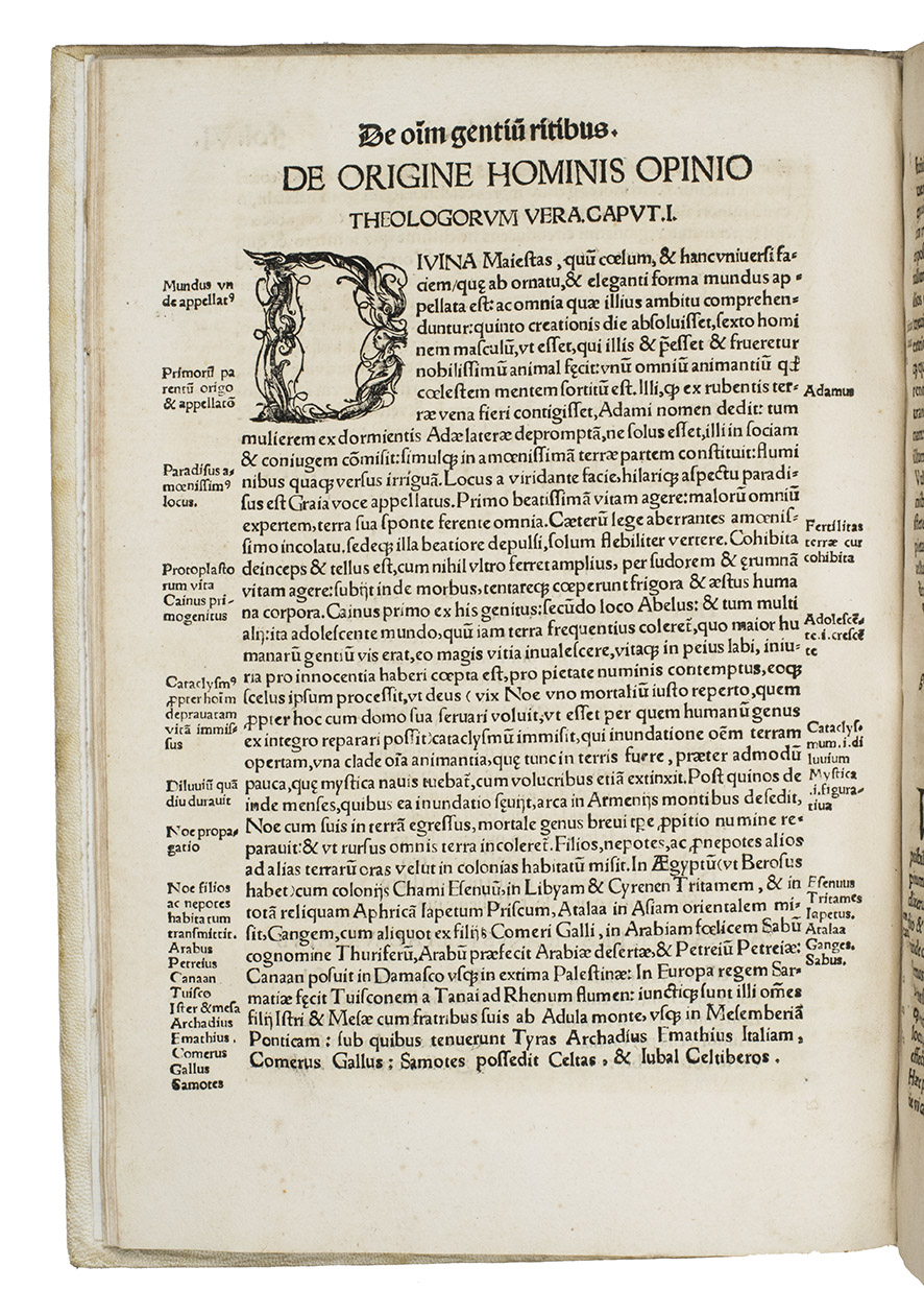 First edition of a pioneering and highly influential foundational work of anthropology that went through almost fifty editions in 100 years and was widely read throughout Western Europe. Written by the "father of scientific ethnography" (NDB), who based his information on several sources from antiquity, as he indicates in the title. It is the first printed compendium of the religion, laws and customs of the peoples of Africa, Asia and Europe. The chapters are classified by region, including Egypt, Assyria, Persia, India, Russia and Ethiopia. The part on India stands out among the rest because of the addition of new information drawn from recent explorations by Ludovico di Varthema, first published in 1510 (just ten years earlier).