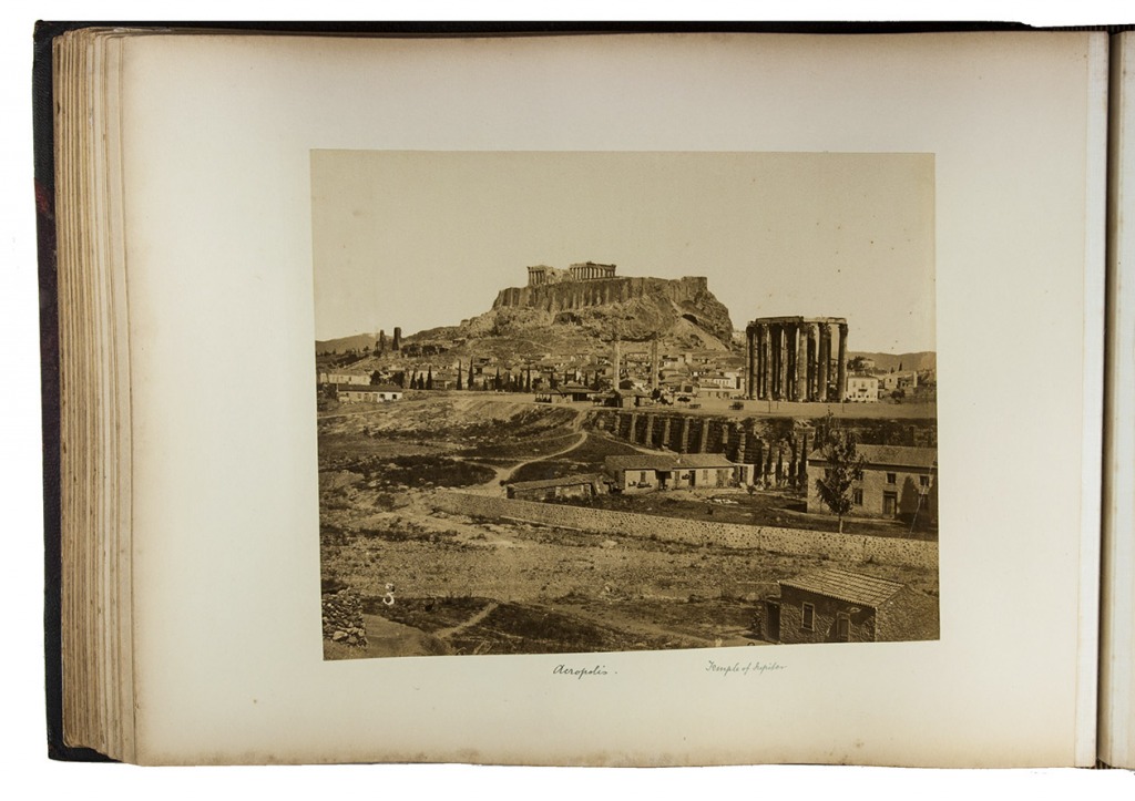 Interesting photo album, probably compiled as a souvenir of a journey through the Holy Land, Egypt, Athens and Venice in the 1890s. Complete souvenir albums were sold by photographer's studios and dealers alike. However, the fact that the current album has several blank pages at the end, lacks a binding title and contains photographs showing several different countries, suggests that it was compiled by an individual traveller. Among the photographs of Athens, is an image of the statue of Themis, excavated in 1890 in Rhamnous and subsequently transported to Athens. The inclusion of this photograph suggests the album was compiled in or soon after 1890.