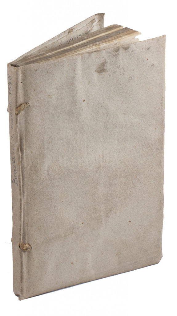 Venice, Vincent Valgrisi, 1548. 8vo. With a woodcut device on title-page and a larger version on the last page. Later stiff paper wrappers. 140, [2] pp.