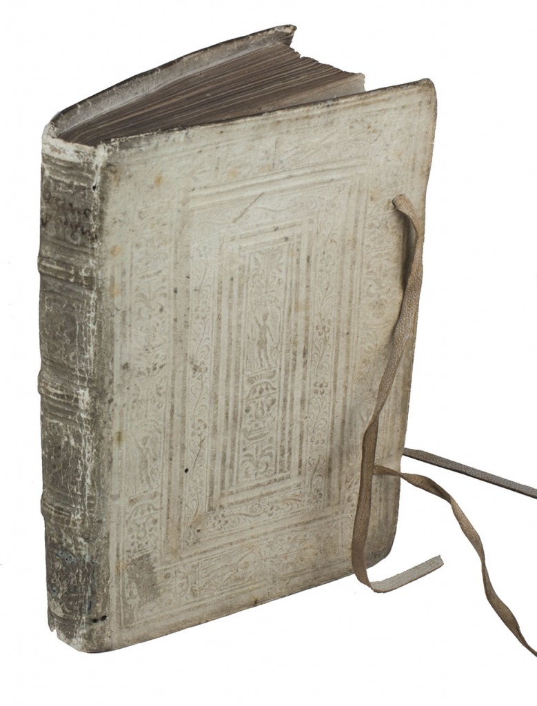(Colophon: Lyon, Johannes Crespin, 1532). 2 parts in 1 volume (bound in reverse order). 8vo. With armorial woodcut on title-page to the second part (bound as opening title-page), repeated several times in text, and numerous woodcut initials. Contemporary vellum, richly blind-tooled in a panel design. LVI, CXII ll.