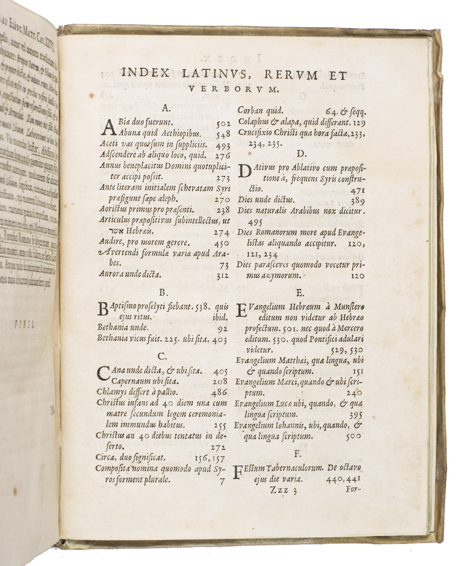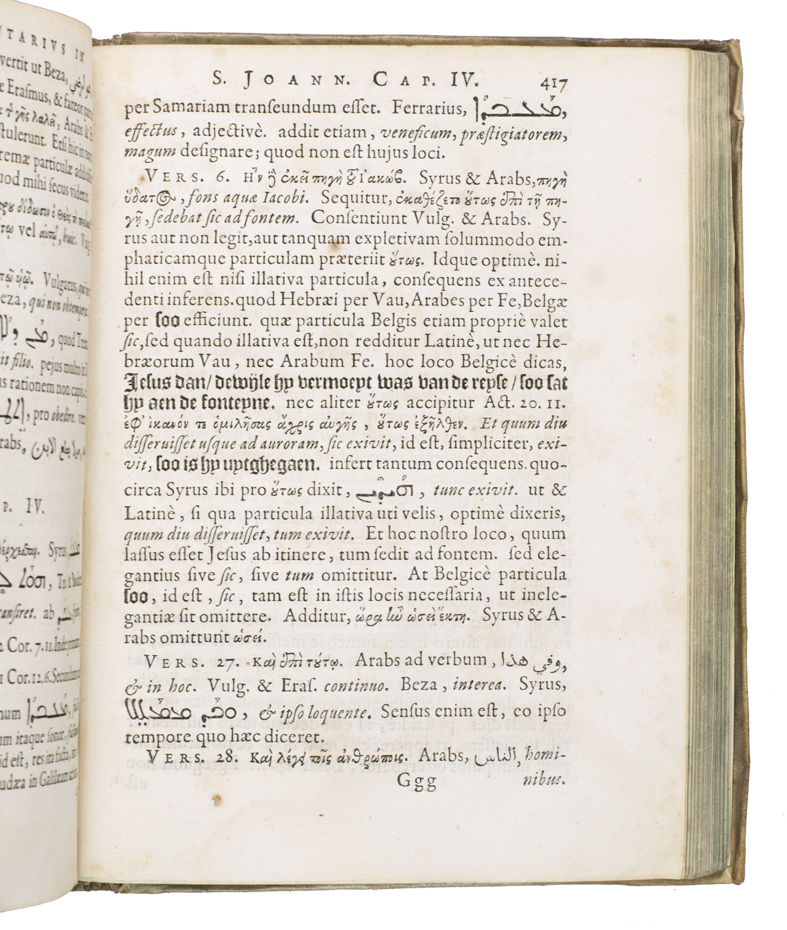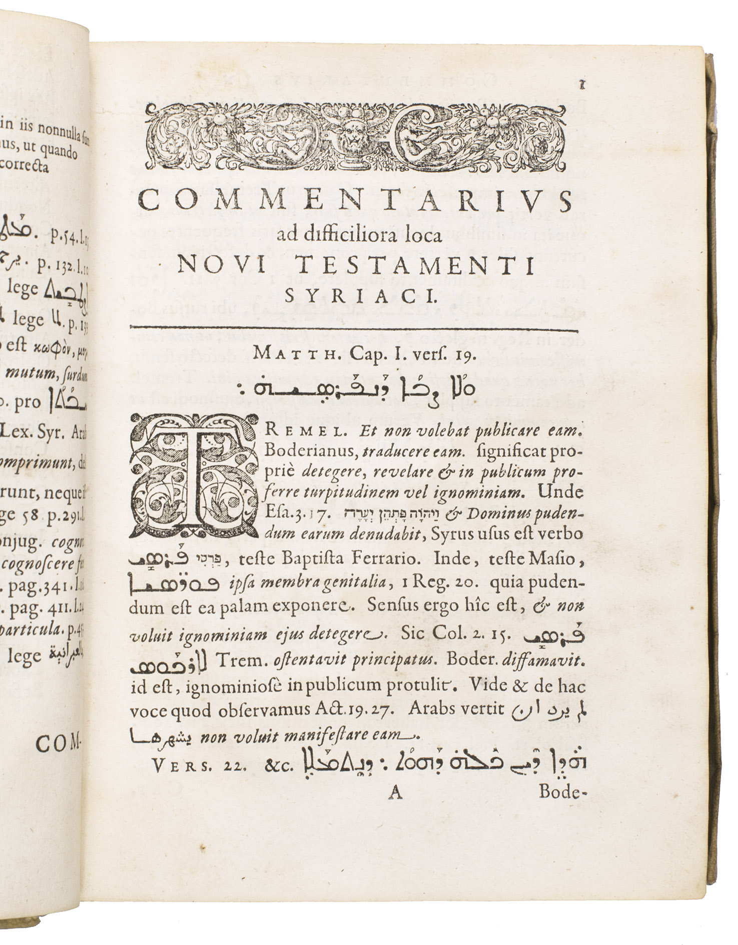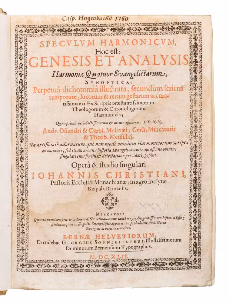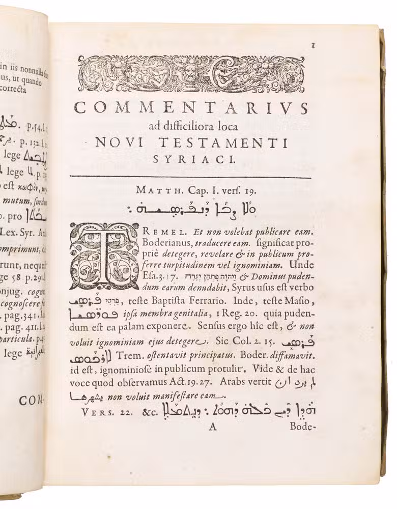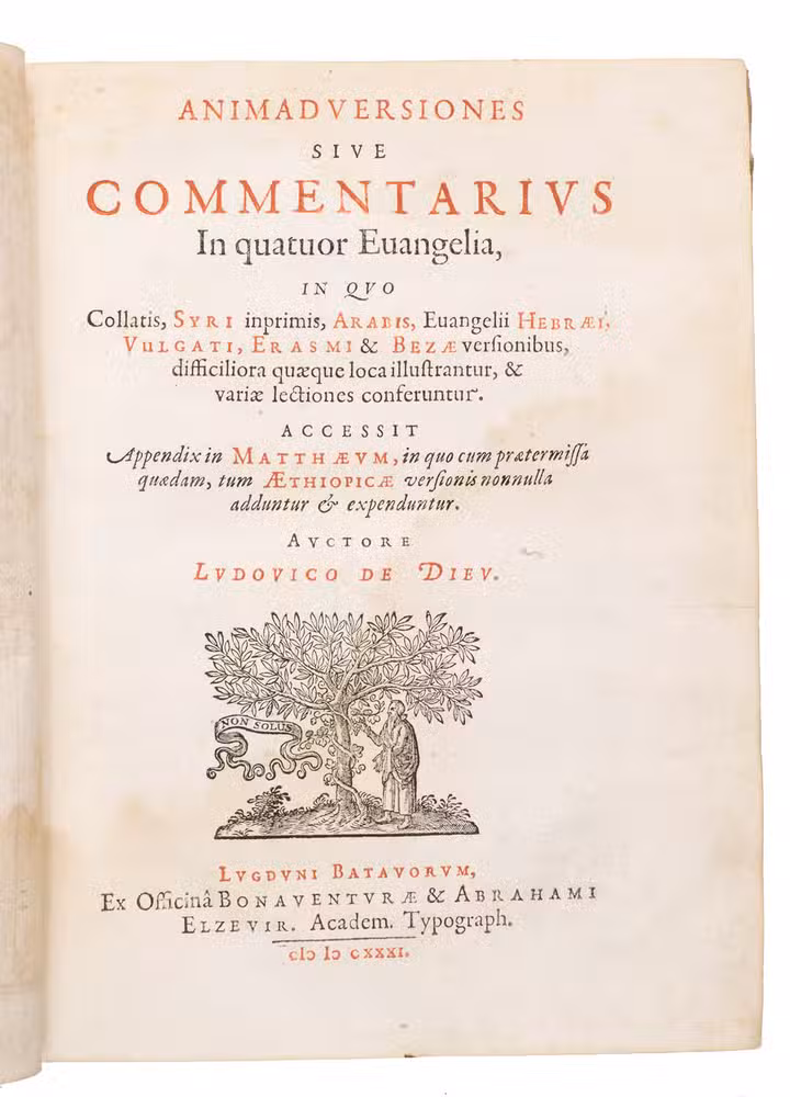Ad 1: First edition of a rare work with commentary on the four Gospels by an important Orientalist. The work is partly printed in Syriac, Arabic, Hebrew and Greek. Louis de Dieu (1590-1642), who was well-versed in all these languages, was renowned for his interpretations of biblical texts, which were based on a wide and profound linguistic learning. His studies were mainly concerned with the early and more recent translations of the Bible. In the present work, he compares the Gospel texts in the Oriental languages with that of the Latin translations by humanist Desiderius Erasmus (1466-1536) and Calvinist Theodore Beza (1519-1605).