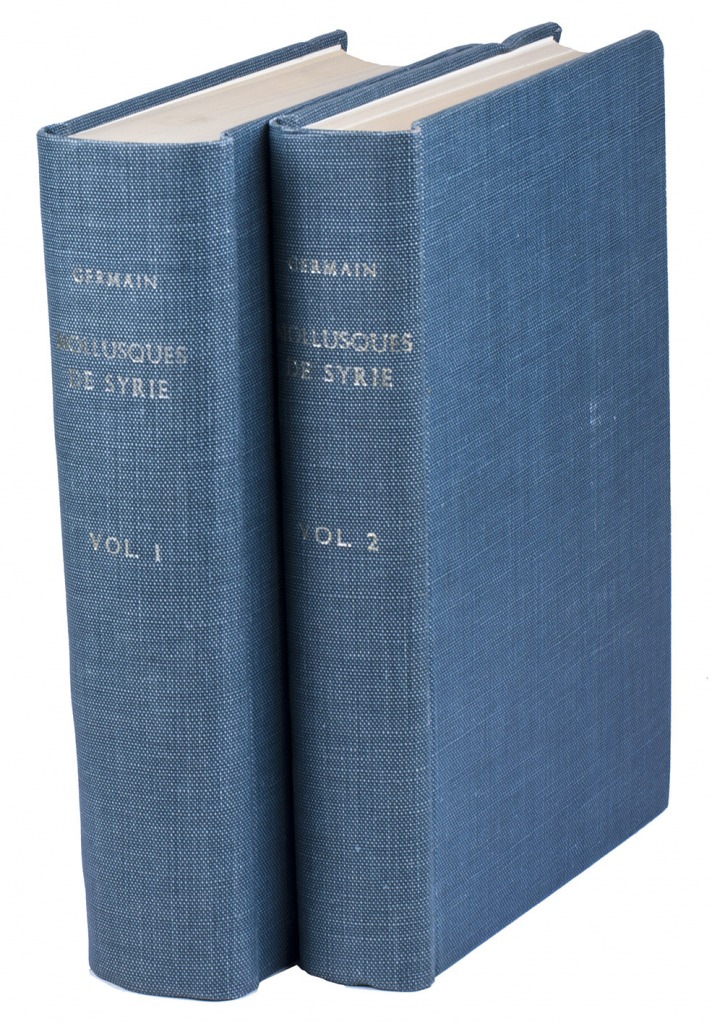 First edition of an extensive work on both land- and water molluscs that can be found in Syria, by the French malacologist Louis Germain (1878-1942). It describes numerous families and species of molluscs, the first volume containing an introduction and the sections on Syrian gastropods (snails and slugs), the second volume dealing with pelecypods (bivalvia) and closing with an index.