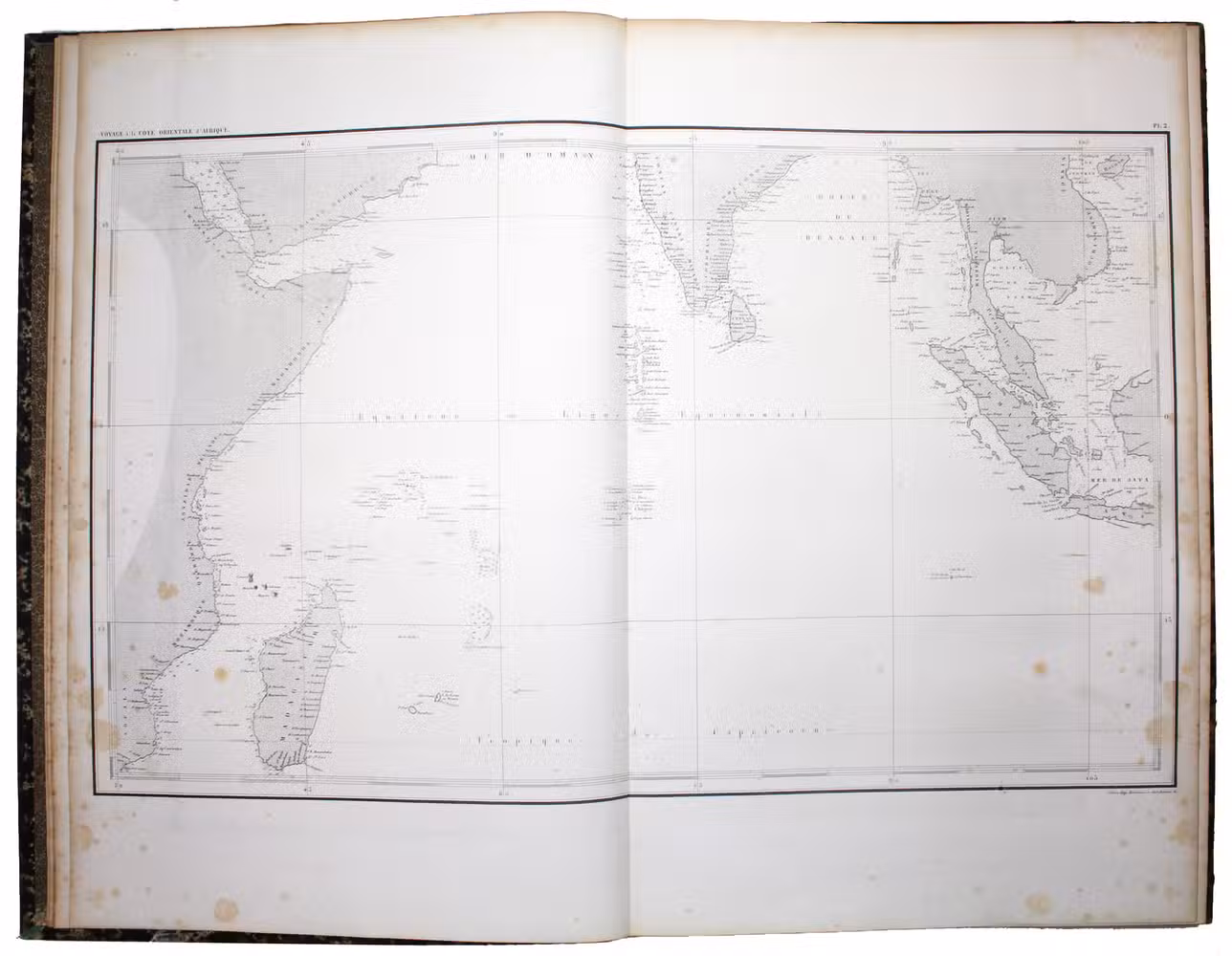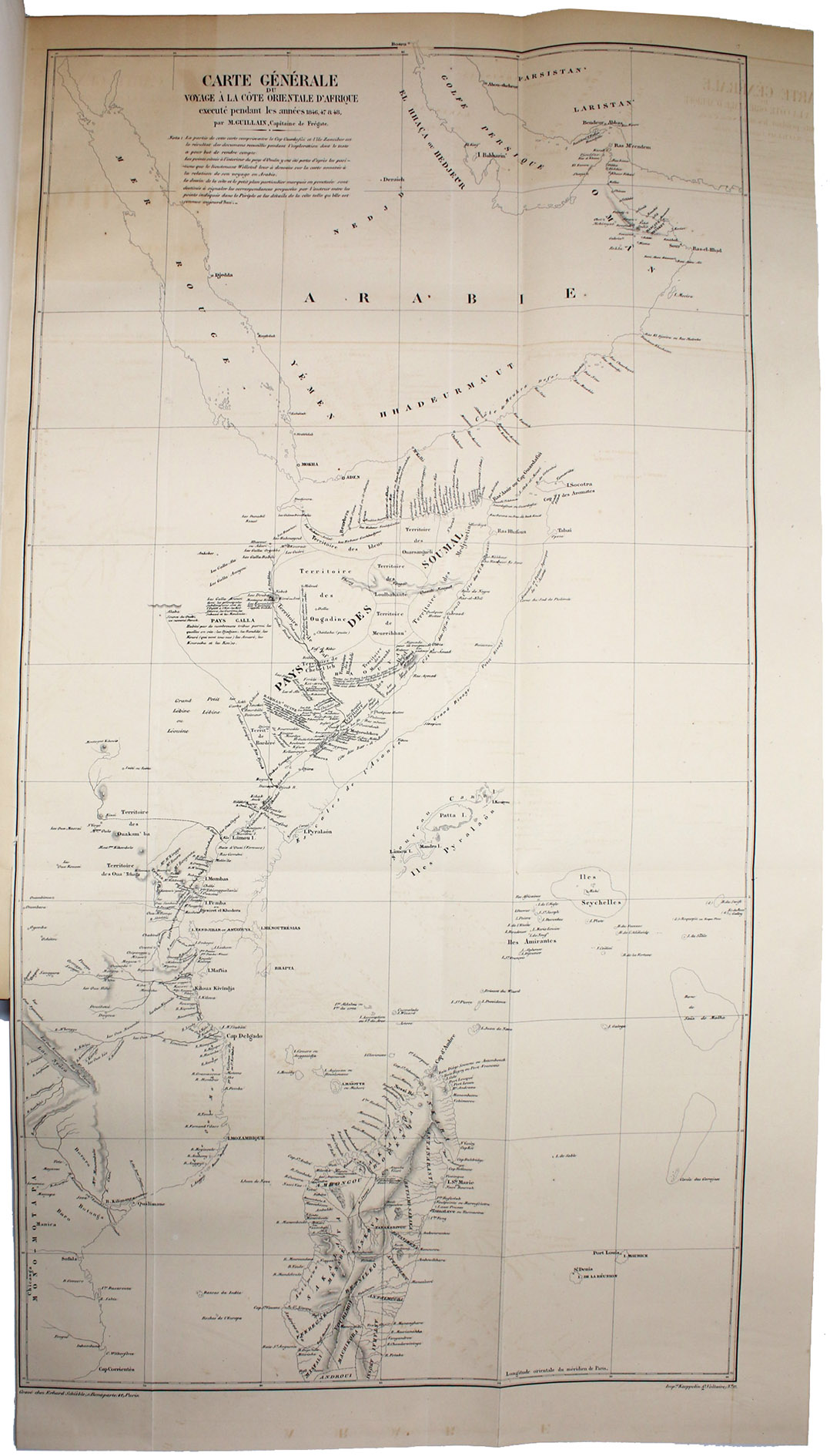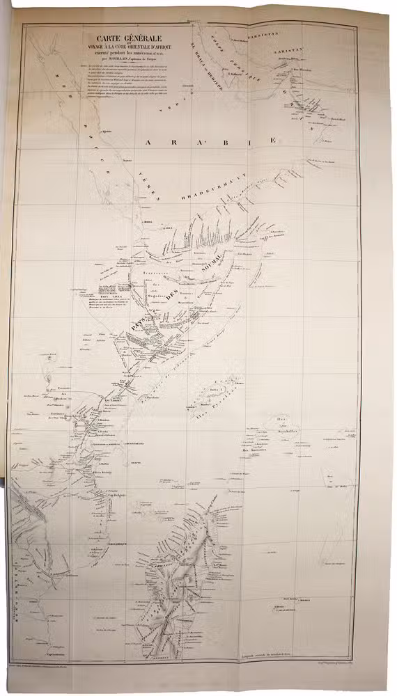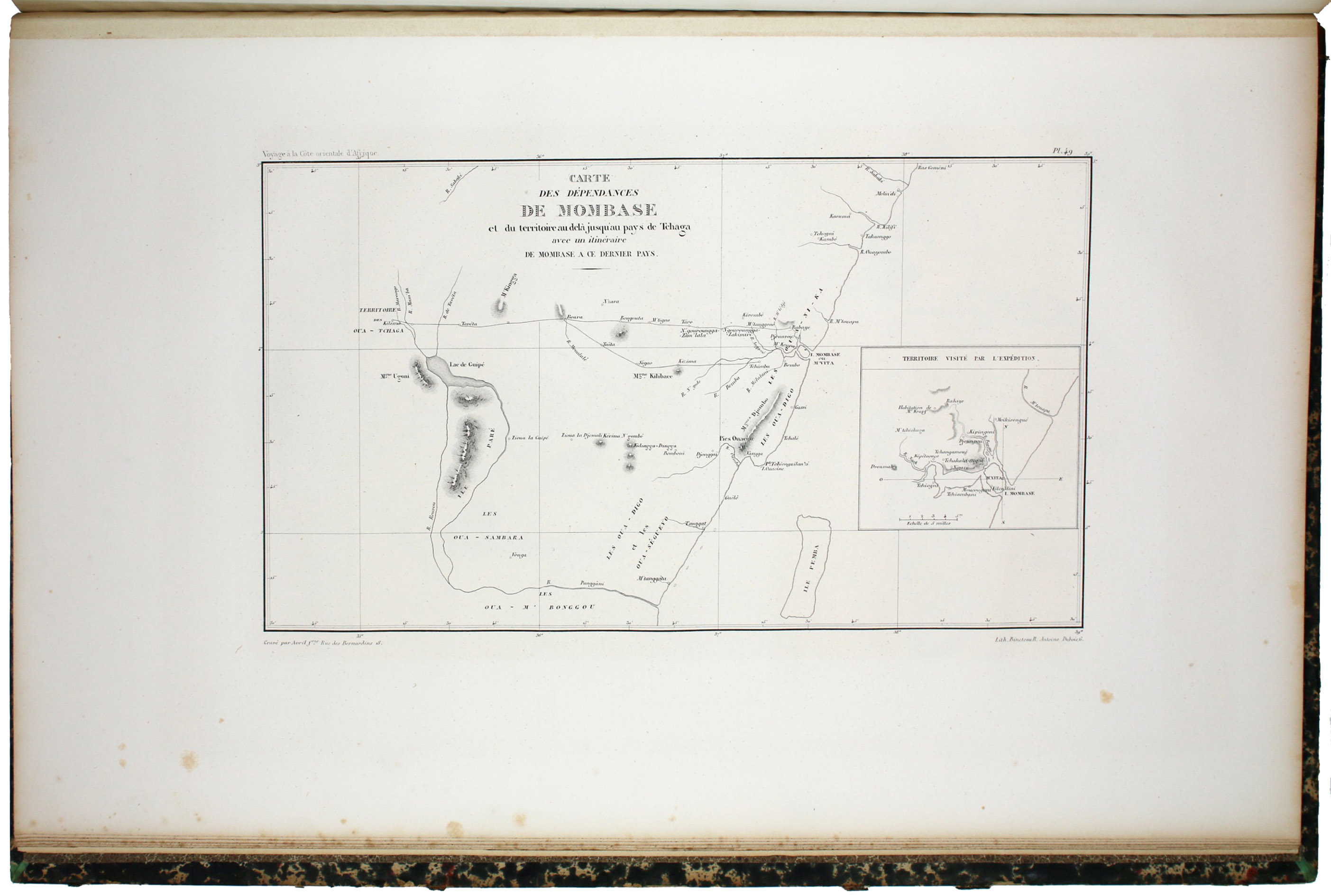 Complete in three volumes and a folio atlas, this work traces the expedition of Charles Gullain (1808-75) along the eastern coast of Arabia and Africa, from Oman to Madagascar, and features several innovations in its maps and plates, including lithographed portraits based on daguerreotypes.