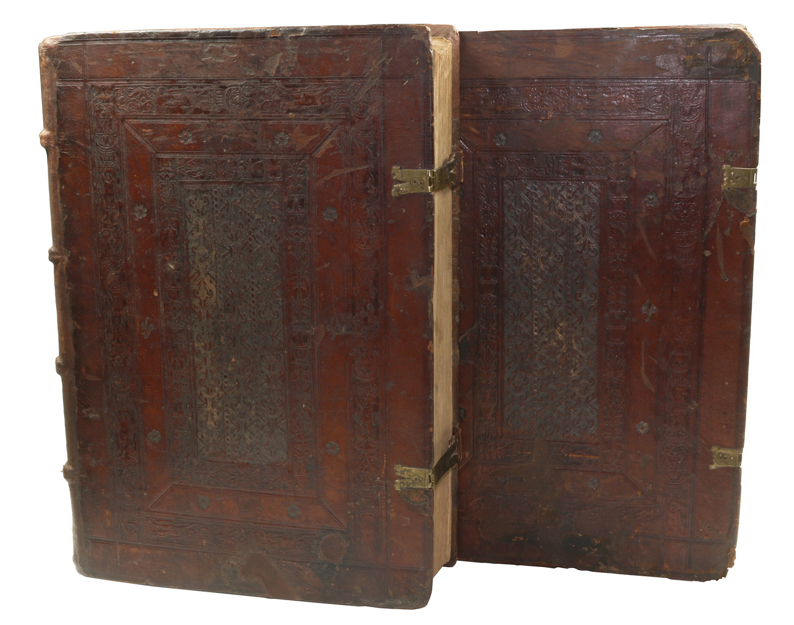 With a few contemporary manuscript annotations, and traces of bookplates removed from the paste-downs. A pencil note on the front paste-down of vol. 2 notes that the set came from the Fritzlar Cathedral Library, parts of which were dispersed in 1724 and in 1803. It was sold by Venator (Cologne), sale 23/24 (1962), lot 15 (illustration plate IV).