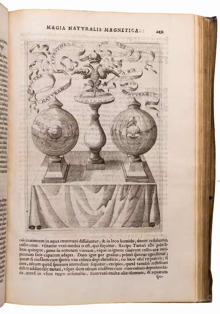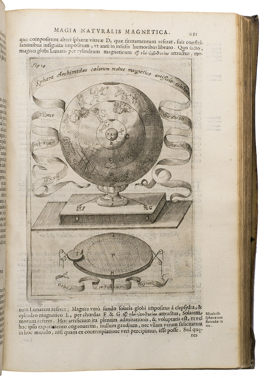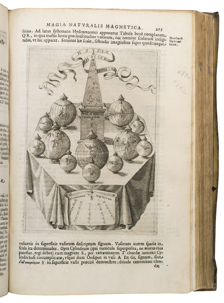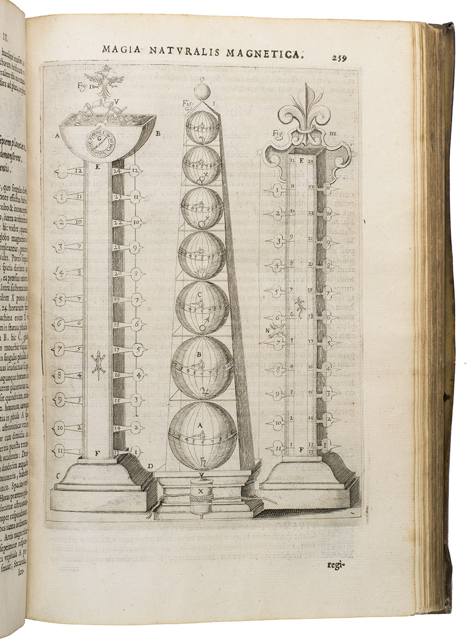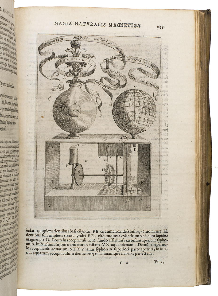 The third, last, best and only folio edition, much enlarged, thoroughly revised and with the engraved and many other illustrations newly made for it, of one of the major scientific works of the famous German Jesuit scholar, Athanasius Kircher (1602-1680), a truly encyclopedic work on magnetism. Kircher published his first major work, Ars Magnetica, in 1631. Only 63 pages in length, it extensively reports on his invention of a method for measuring magnetic power by means of a balance. The present work on magnetism was for Kircher an omnibus of scientific and also phantastic theories. He researched and measured magnetism in numerous situations and applied it to numerous fields of study, including cosmology, astronomy, geography, optics, electricity, medicine, metallurgy, animals, music, love, etc. He was the first to propose using magnetic declination to determine longitude.