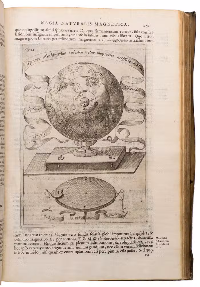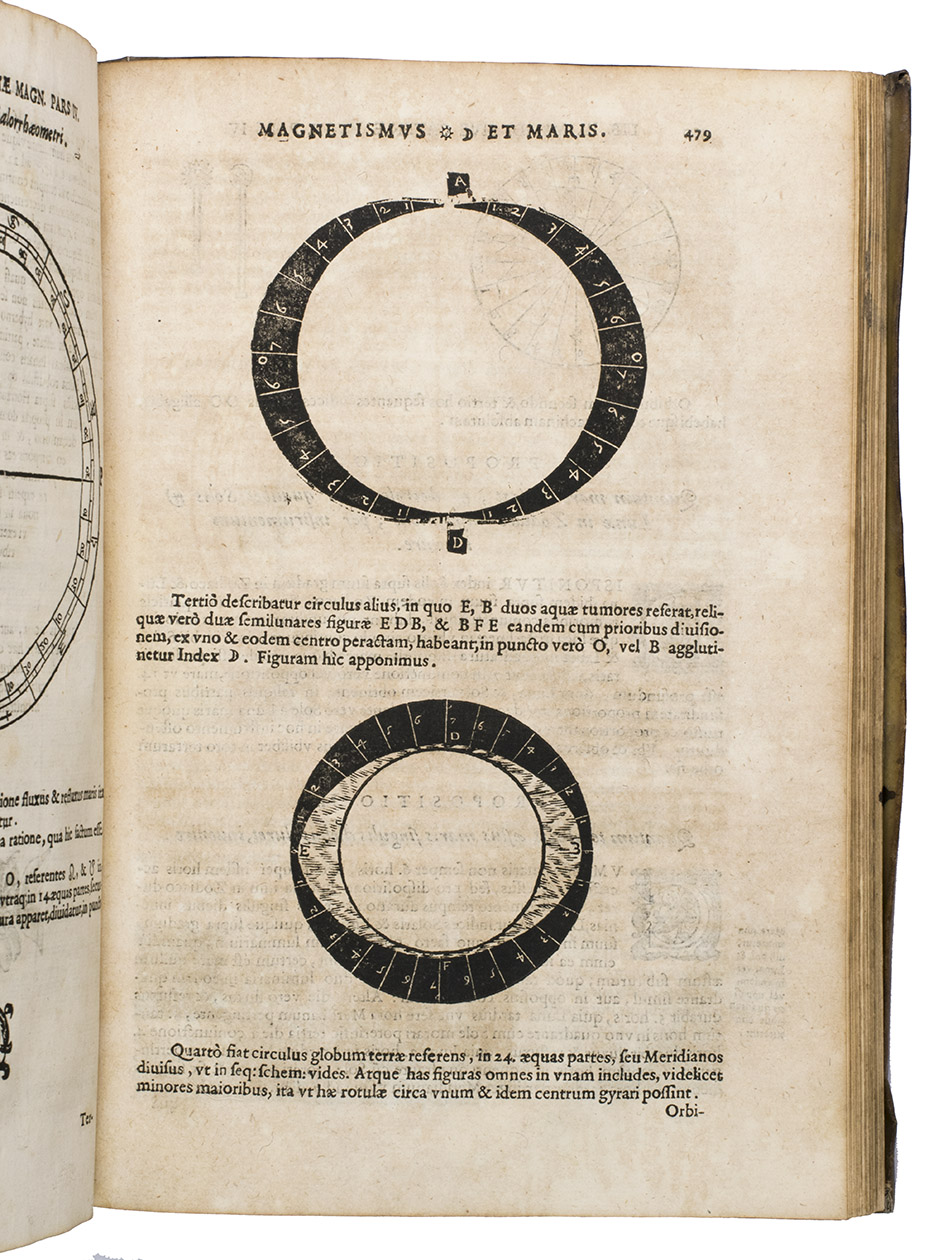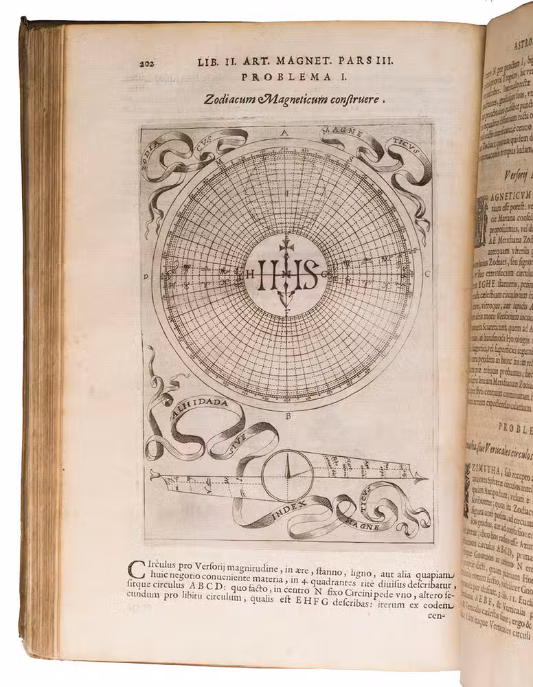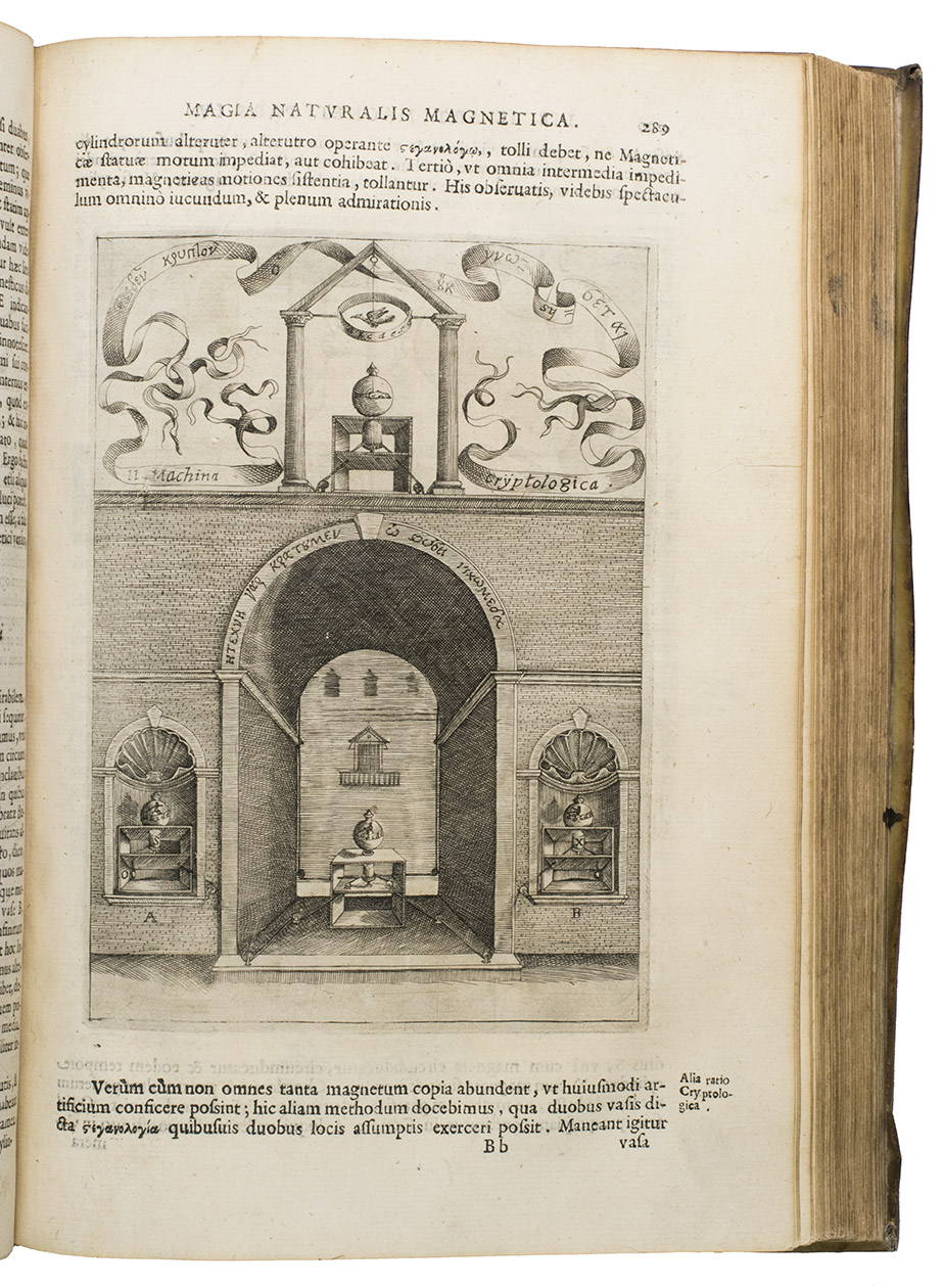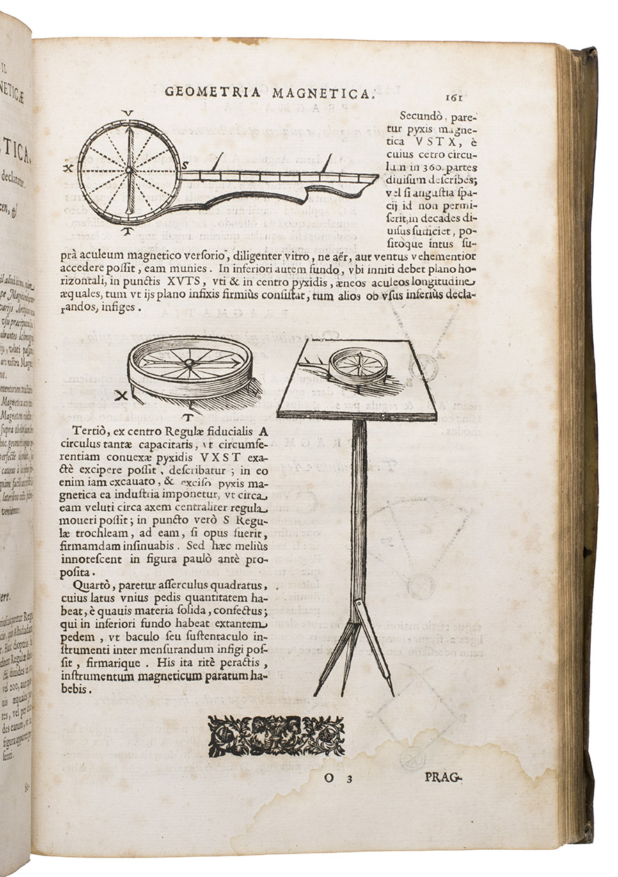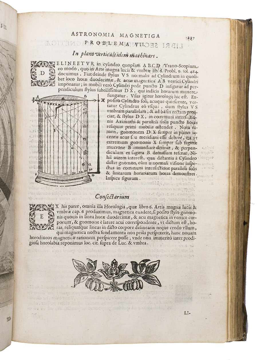 The third, last, best and only folio edition, much enlarged, thoroughly revised and with the engraved and many other illustrations newly made for it, of one of the major scientific works of the famous German Jesuit scholar, Athanasius Kircher (1602-1680), a truly encyclopedic work on magnetism. Kircher published his first major work, Ars Magnetica, in 1631. Only 63 pages in length, it extensively reports on his invention of a method for measuring magnetic power by means of a balance. The present work on magnetism was for Kircher an omnibus of scientific and also phantastic theories. He researched and measured magnetism in numerous situations and applied it to numerous fields of study, including cosmology, astronomy, geography, optics, electricity, medicine, metallurgy, animals, music, love, etc. He was the first to propose using magnetic declination to determine longitude.