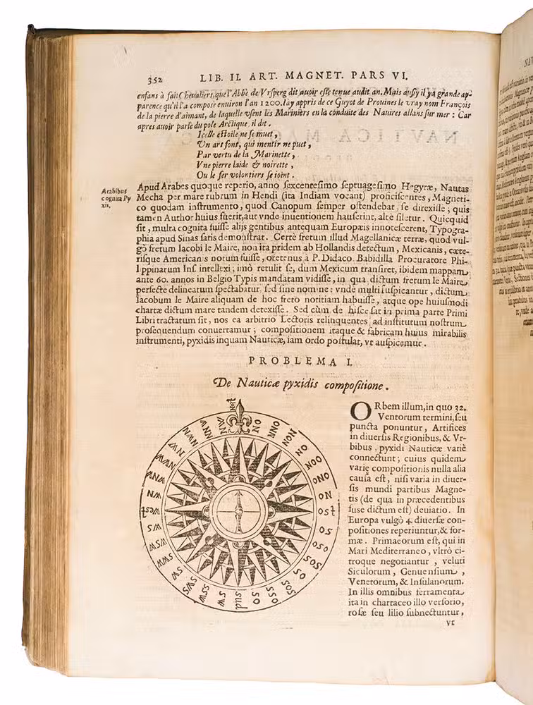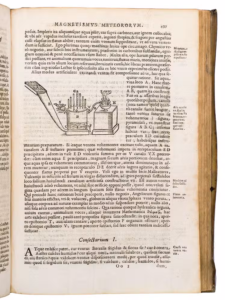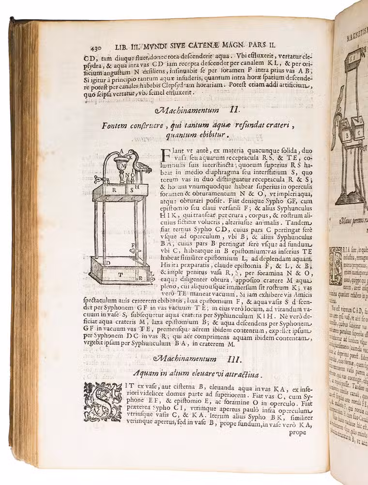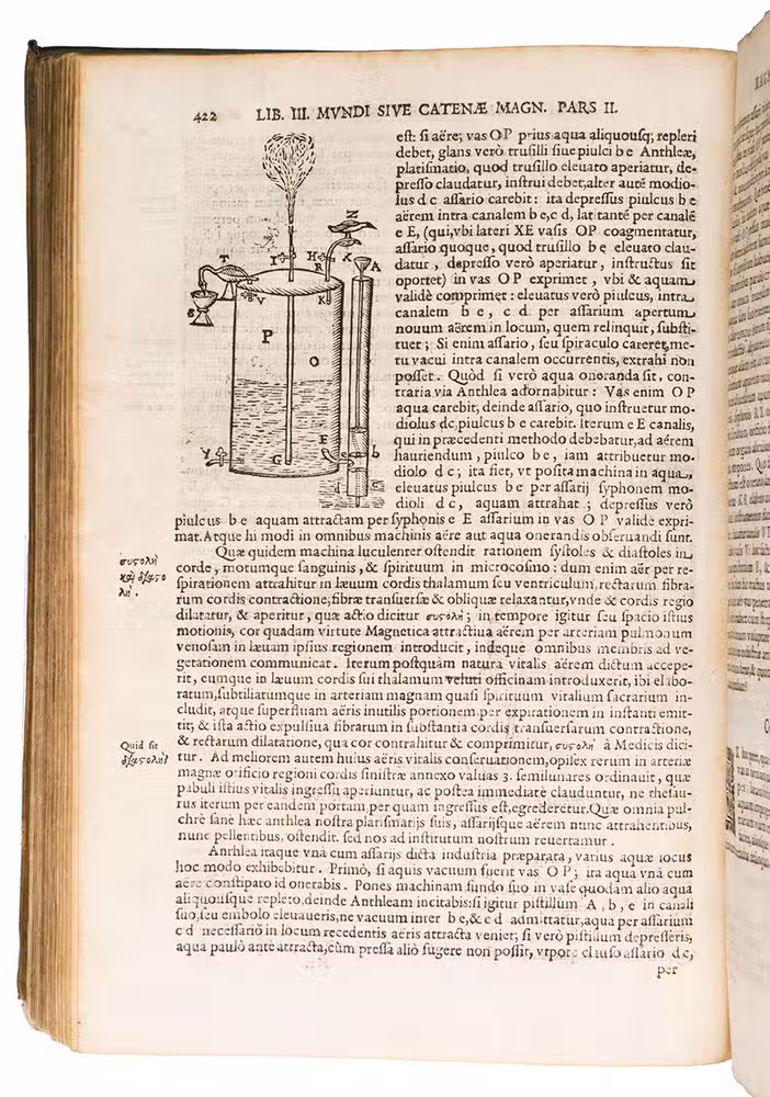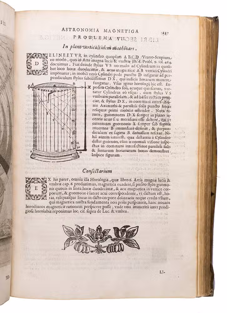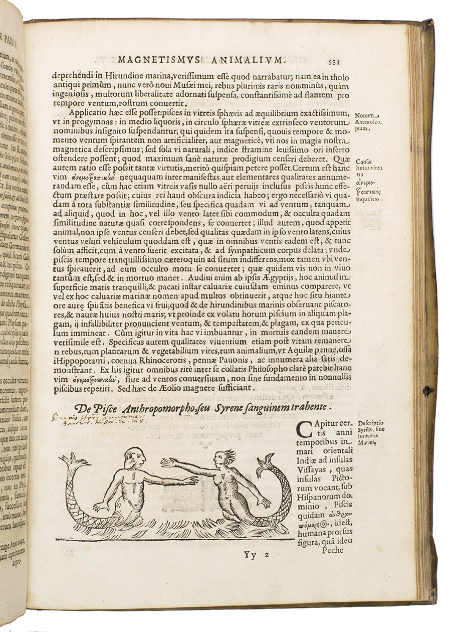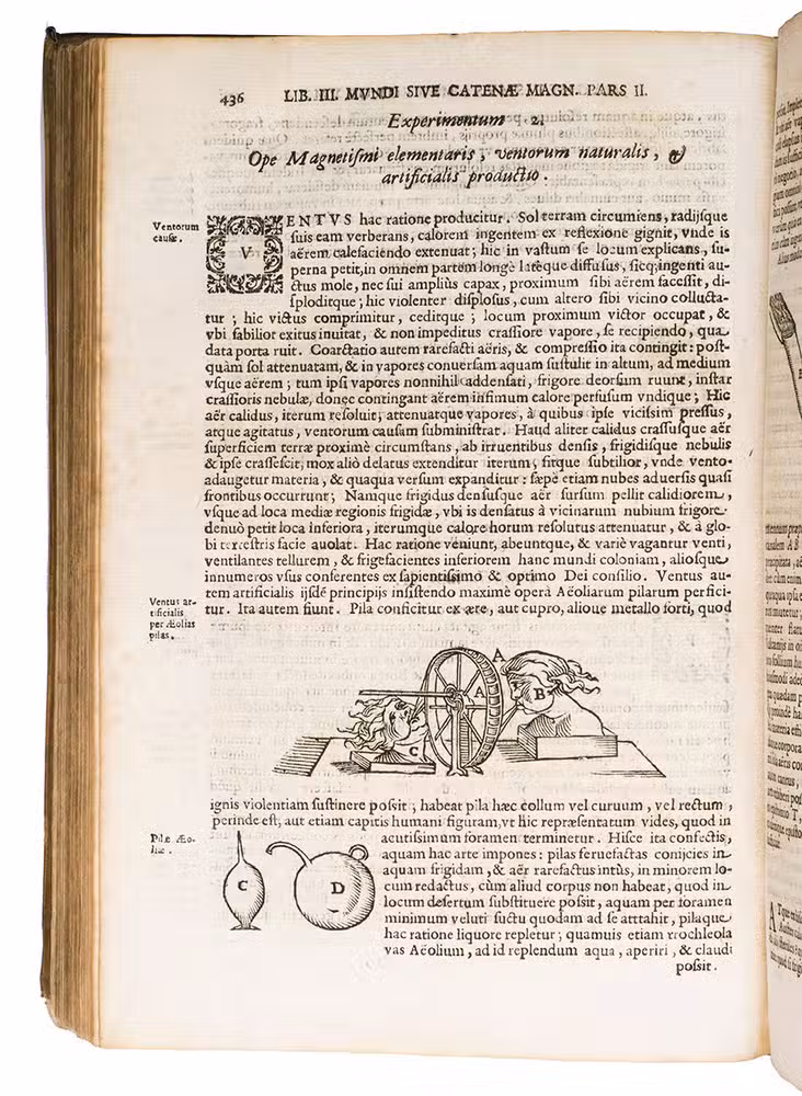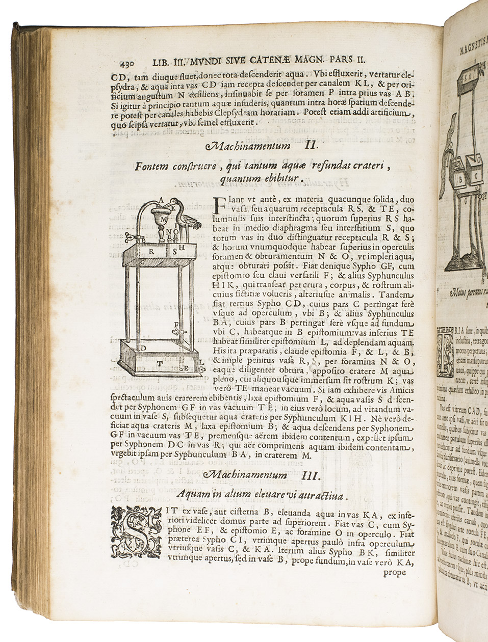 The third, last, best and only folio edition, much enlarged, thoroughly revised and with the engraved and many other illustrations newly made for it, of one of the major scientific works of the famous German Jesuit scholar, Athanasius Kircher (1602-1680), a truly encyclopedic work on magnetism. Kircher published his first major work, Ars Magnetica, in 1631. Only 63 pages in length, it extensively reports on his invention of a method for measuring magnetic power by means of a balance. The present work on magnetism was for Kircher an omnibus of scientific and also phantastic theories. He researched and measured magnetism in numerous situations and applied it to numerous fields of study, including cosmology, astronomy, geography, optics, electricity, medicine, metallurgy, animals, music, love, etc. He was the first to propose using magnetic declination to determine longitude.