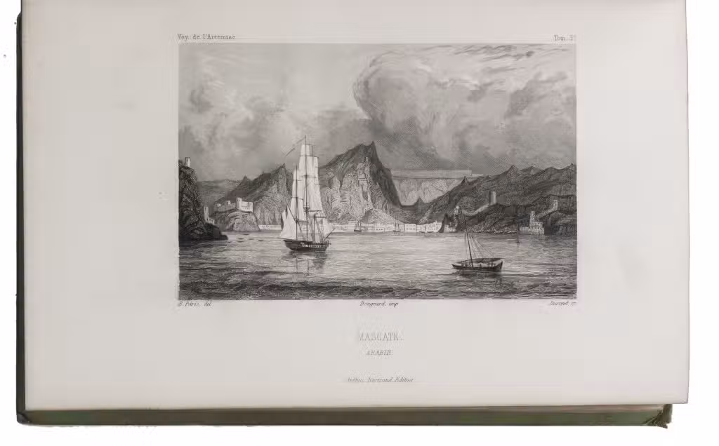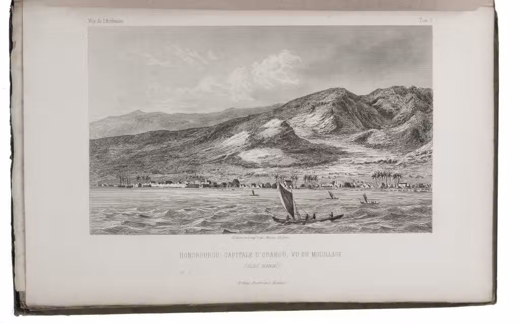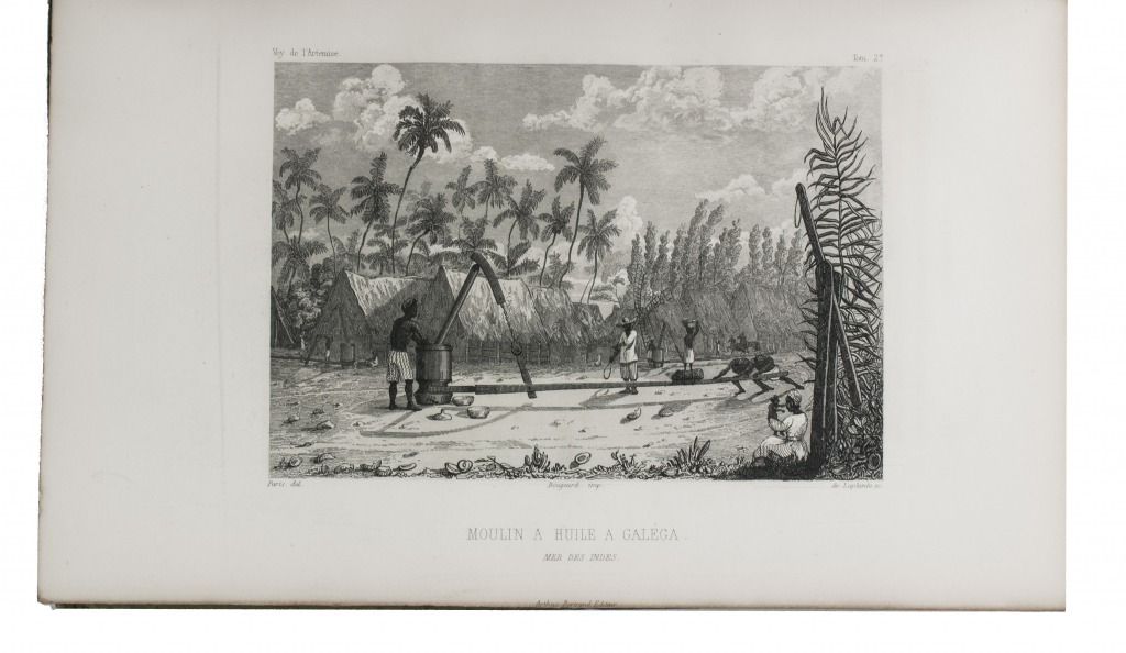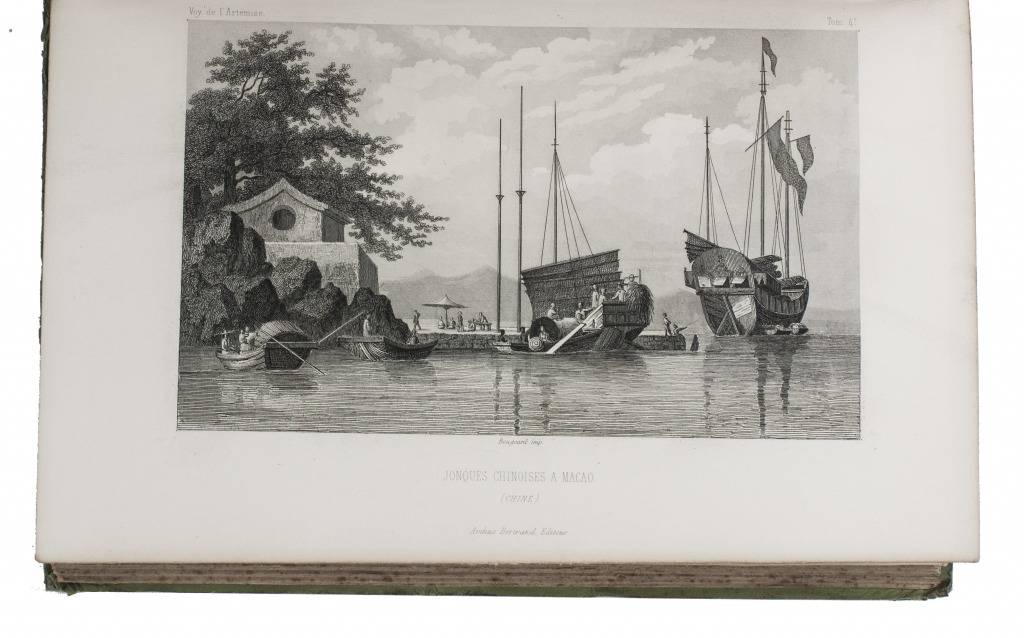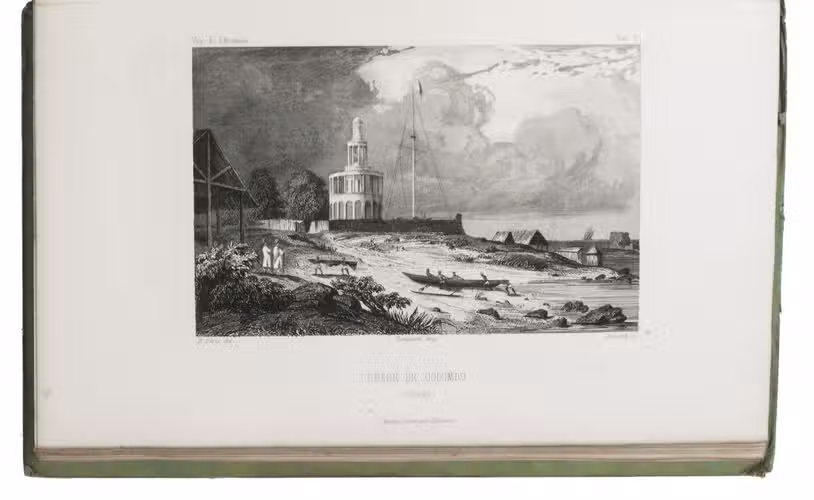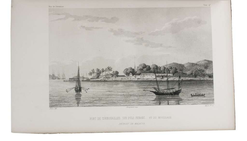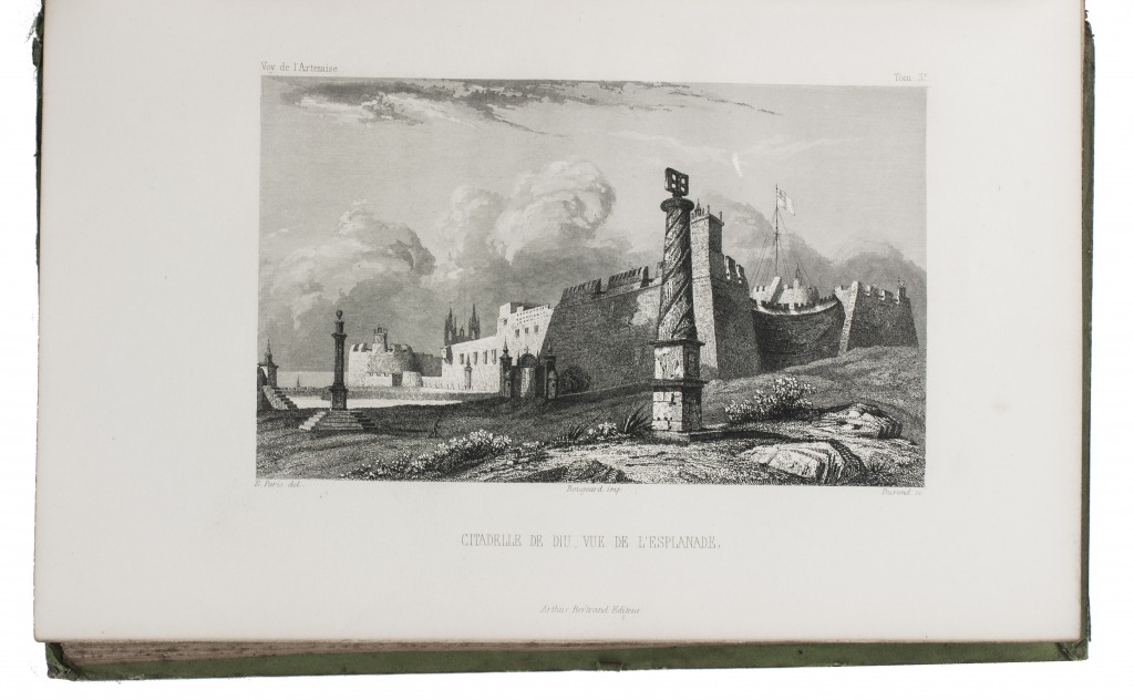 First and only complete edition, containing about 2800 pages of official reports of one of the most important 19th-century circumnavigations of the globe, especially valuable for its information on Tahiti and Hawaii, and for its detailed view of the political manoeuvrings of the various colonial powers with each other and with the indigenous populations, both in the Pacific and elsewhere. The 31 stunning steel-engravings ("fine quality": Forbes) enrich the account greatly. Besides the well-known Pacific views (Hawaii, Tahiti, Tasmania, the Philippines, Vietnam) they include mosques at Karikal and Kolkotta in India and views of Oman, Mocha, Brazil, Peru, California and much more. Laplace also provides valuable information about trade on the coasts of the Arabian peninsula (including Muscat, al-Muka and Bandar-Abbas) and Iran. This was Laplace's second circumnavigation of the globe, sailing in the ship l'Artémise, beginning in 1837, five years after he returned from his voyage in La Favorite. The world map shows the routes of both voyages (the second map shows the Indian subcontinent and surroundings in more detail).