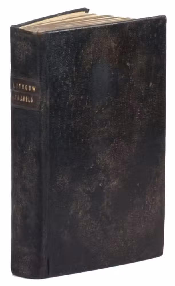 Some plates bound at wrong position. With an occasional small tear or hole; trimmed, occasionally shaving a running head; and with the frontispiece backed with later paper. A pioneering travel account, including detailed observations of life in the Ottoman Empire, Egypt and other parts of the Middle East. ESTC R28791; Howgego, to 1800, L134; Wing L2541; cf. Blackmer 1021 (1640 ed.); for Lithgow: DNB XXXIII, p. 361.