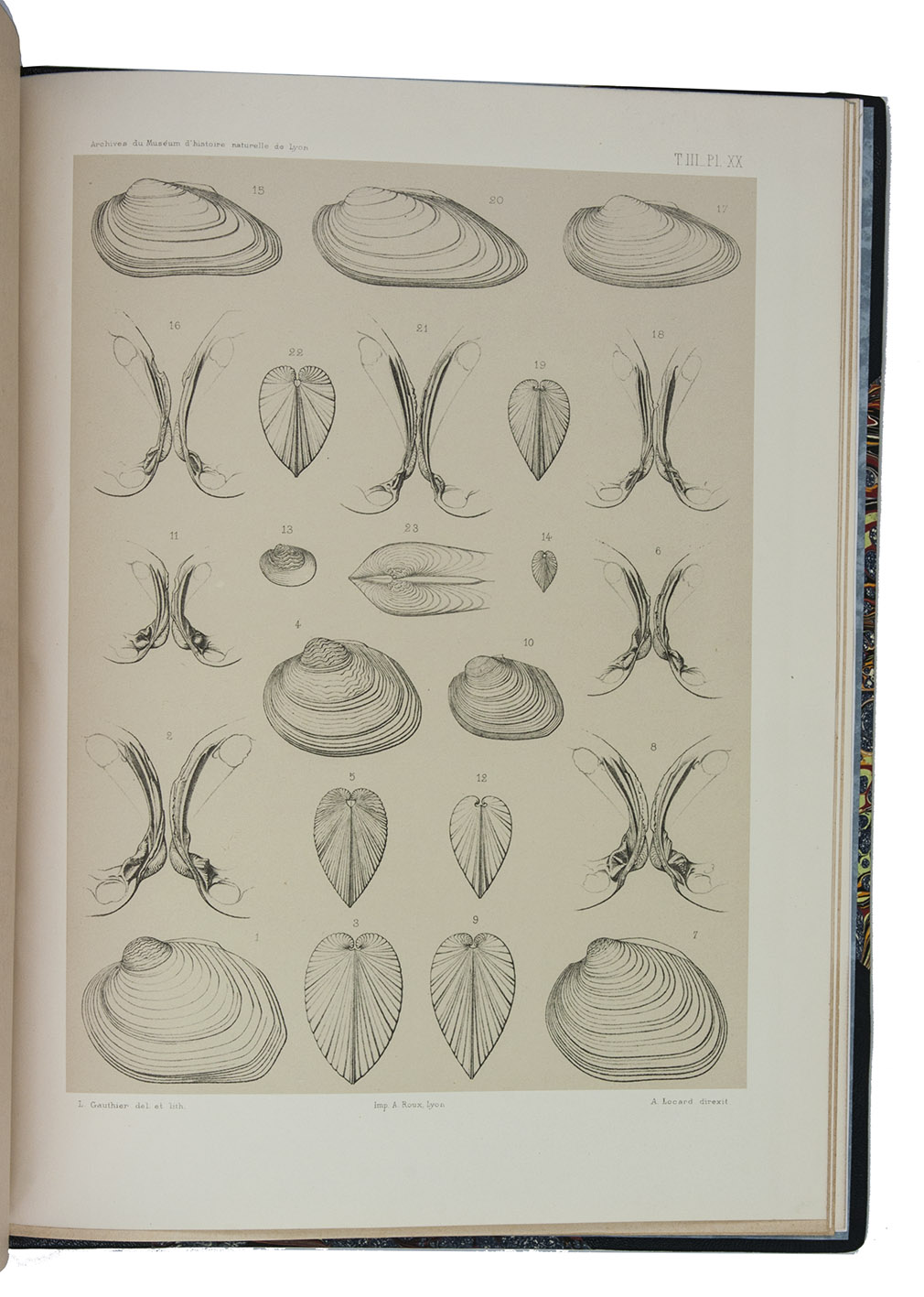 Extract from the third volume of the Archives du museum d'histoire naturelle de Lyon, containing an article on shells and molluscs from Lake Amik (Turkey), the Sea of Galilee and Lake Homs (Syria), written by the French malacologist Arnould Locard (1841-1904). "This work, superbly illustrated, gives, with the fullest details, descriptions of all the known molluscs of the Lake of Galilee ..." (Tristram).