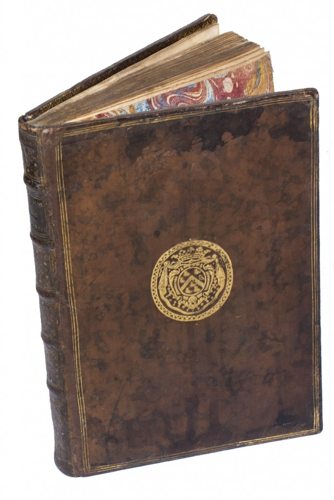 Rotterdam, Jean Hofhoudt, 1730. 8vo. Contemporary marbled calf, gold-tooled spine, boards, board edges and turn-ins, both boards with the gold-tooled coat of arms of Louis Marie Alexandre, Duc d'Aumont, gilt edges. [2], VI, 162, [4] pp.