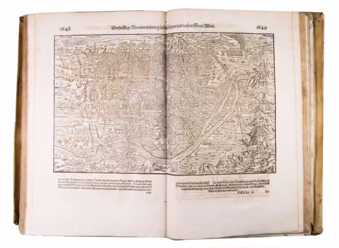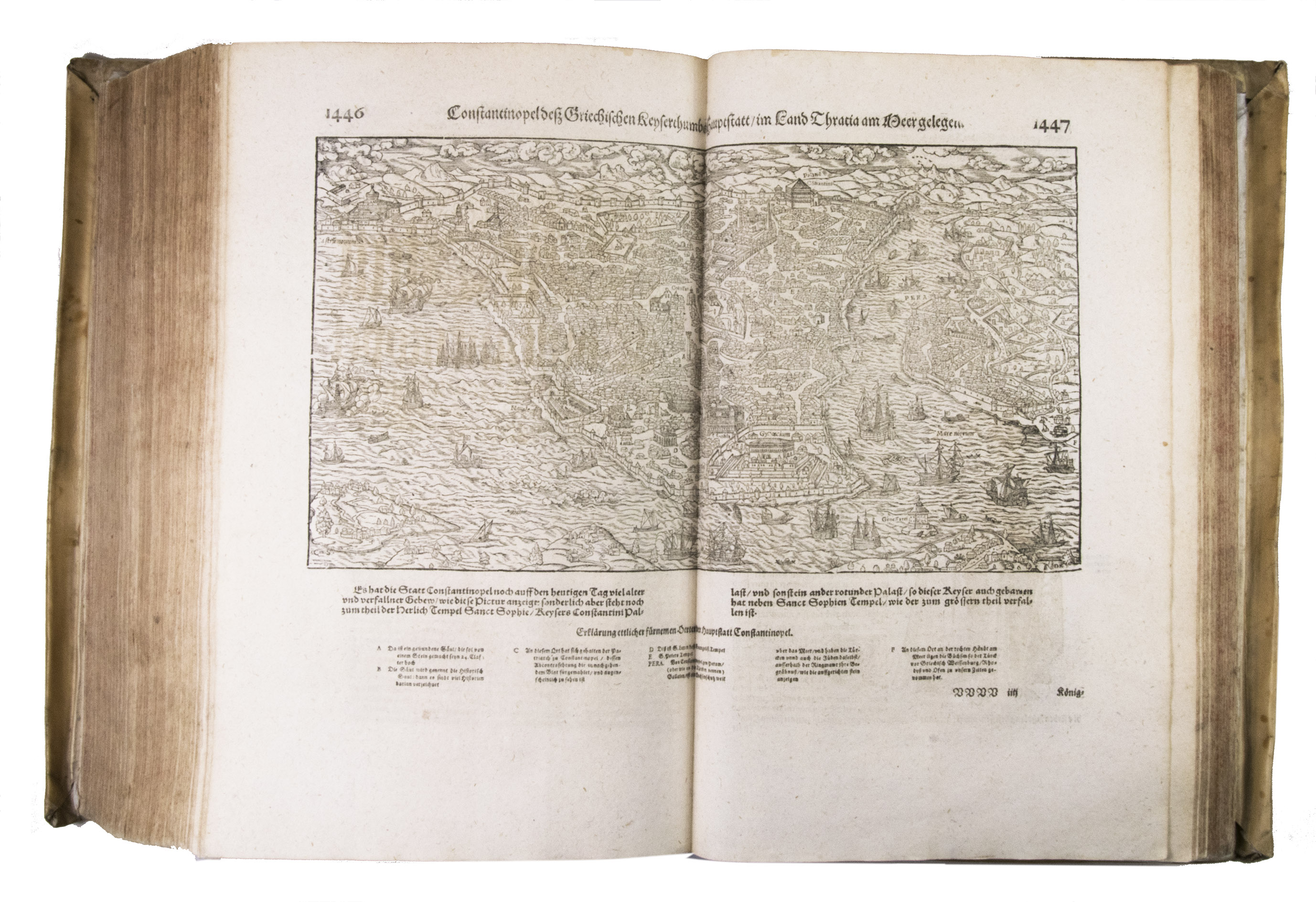 Most extensive edition of Münster's monumental, extensively illustrated description of the world, which set a new standard in the field, following both a regional and encyclopaedic approach. The first edition appeared in 1544, but it was greatly expanded over the years, the present edition adding many new maps. The most highly valued of all cosmographies, it passed through dozens of editions in 100 years and was of paramount importance for the revival of geography in 16th-century Europe. The book was printed by the heirs of Sebastian Henricpetri (1546-1627), the son of Heinrich Petri, stepson of the author Sebastian Münster. The 1588 edition (and the two following editions) contained a total of ca. 1280 woodcuts, which number was increased in the present edition with about 200.