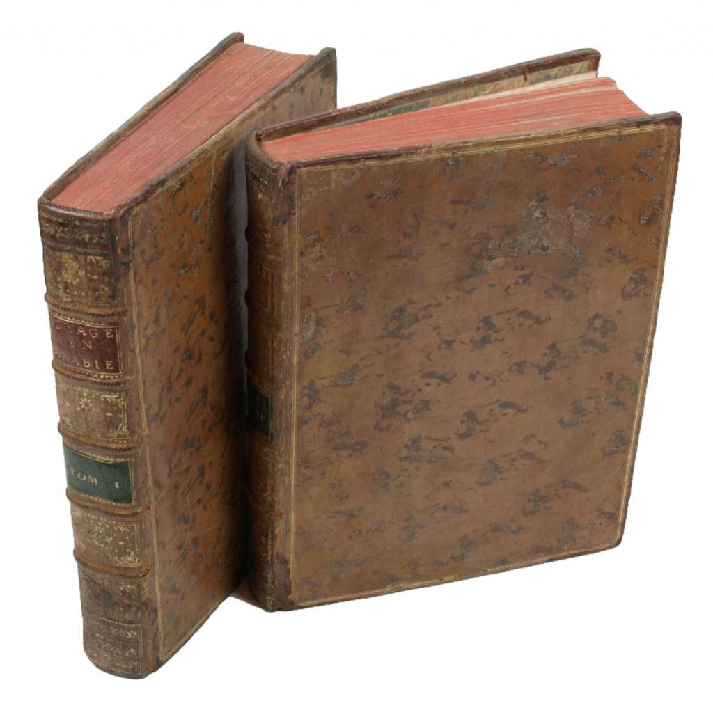Old stamps erased from title pages (leaving insignificant water stains), otherwise in fine condition and in immaculate contemporary French bindings. Beautiful copy of an important work on Arabia with the first exact map of Yemen ever, remaining the standard for the next 200 years. Gay, Bibl. de l'Afrique et l'Arabe 3589; Howgego, to 1800, N24 (p. 752); Van Hulthem 15024; Nyon 21018; Weber II, 549; cf. Macro, Bibliography of the Arabian peninsula, 1700; not in Atabey; Blackmer.