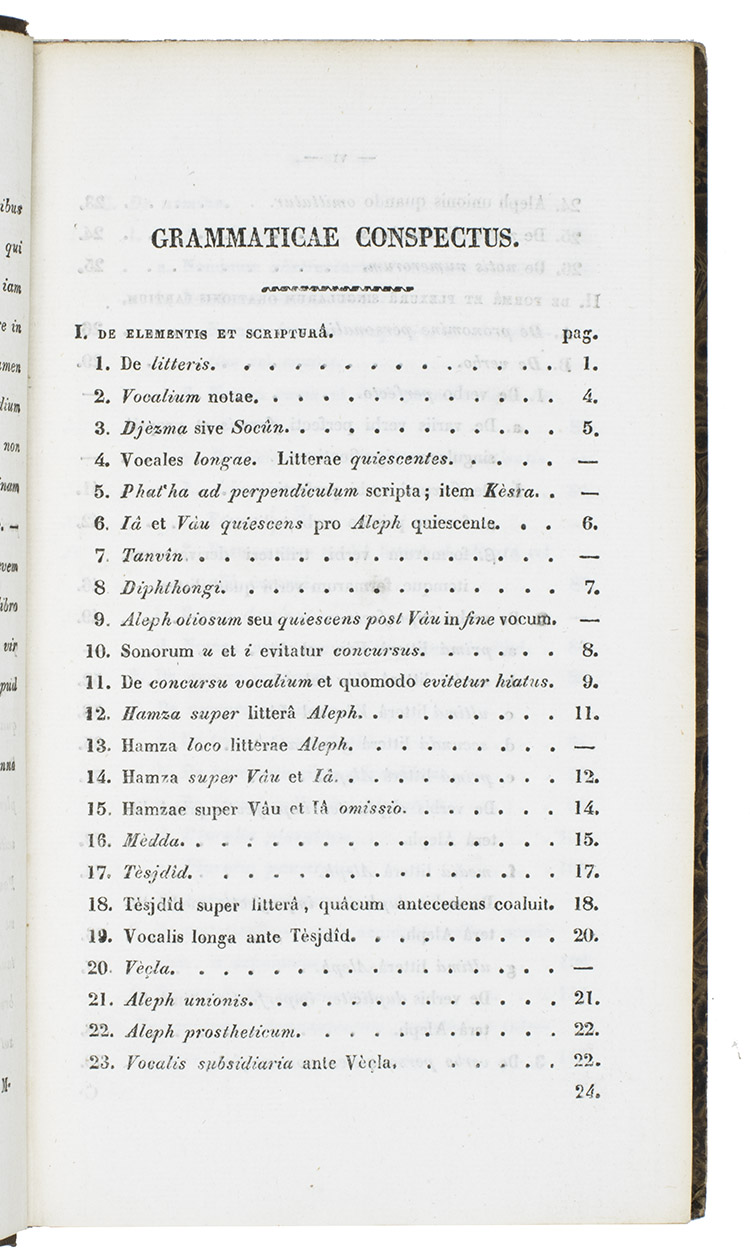 Leiden, Samuel and Johannes Luchtmans, 1835. 8vo. Text set in Roman and Arabic type. Contemporary quarter brown cloth, marbled paper sides, a paper label with the name of the author and the title printed in black on the spine.  VIII, 298, [32] pp.