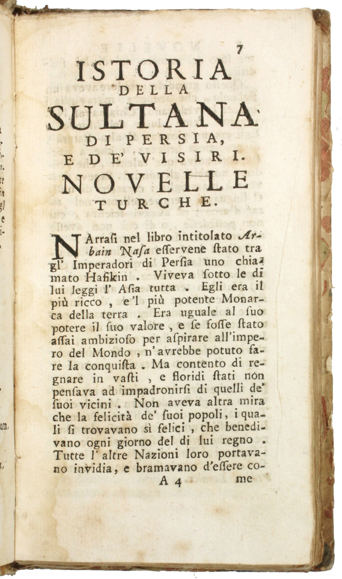 Istoria della Sultana di Persia. Novelle turche. Composte in lingua turca da Chéc Zadé e tradotto dal francese nellidioma italiano.