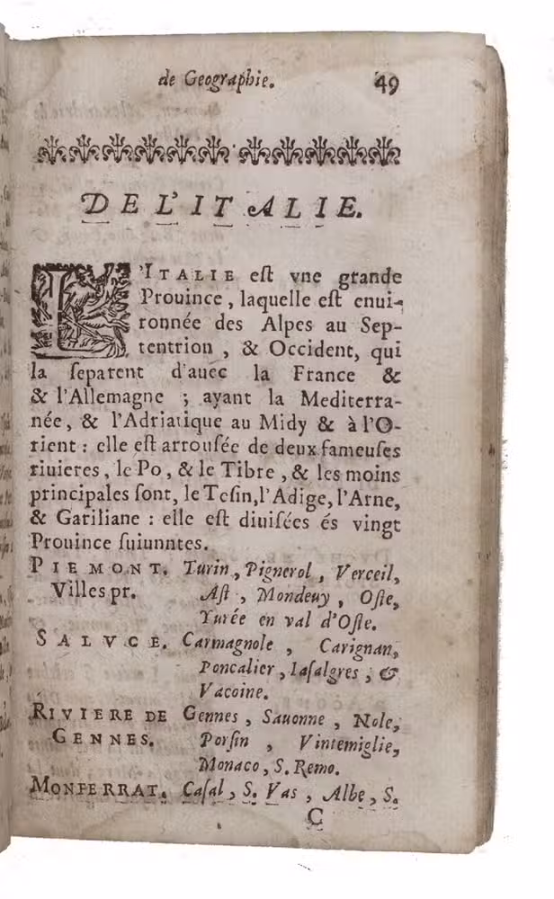 Third edition of one of the first scientific works of the greatest French mathematician of the 16th century, François Viète (1540-1603). Viète graduated in 1560 from the University of Poitiers with a law degree. "In 1564, Viète accepted a position in the household of the prominent family of Jean de Parthenay and his wife, Antoinette d'Aubeterre. In fulfilment of his responsibilities as tutor for their daughter Catherine, he wrote a collection of essays on various scientific subjects." (Bradley). The present compilation of three of these works first appeared posthumously in 1637, based on Viètes manuscript, under the title Principes de cosmographie ..., the three essays forming the three divisions of the book, on the geocentric universe, geography, and astronomy..